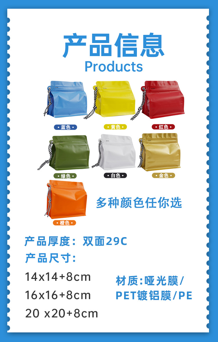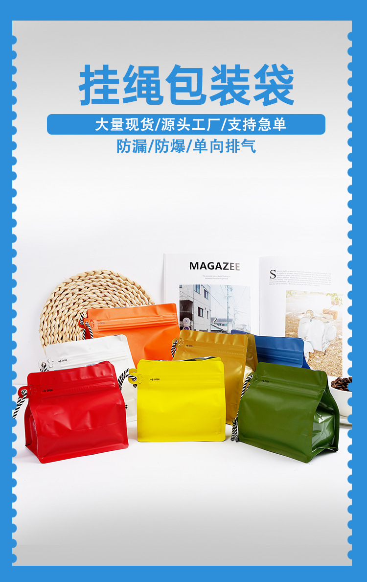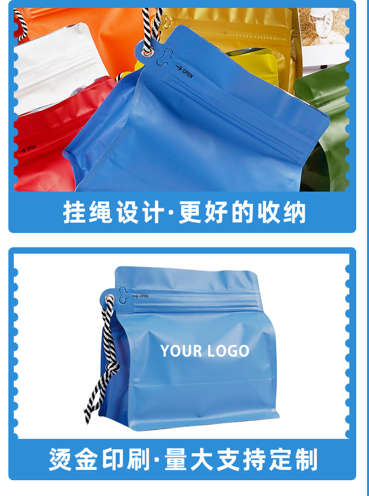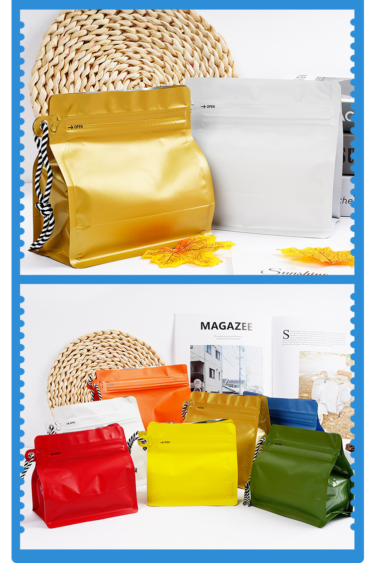식품 포장 백, 자체 밀봉 커피 백, 루빅스 큐브 끈, 커피 원두 에어 밸브 밀봉 백, 8면 밀봉 자립형 자체 밀봉 백