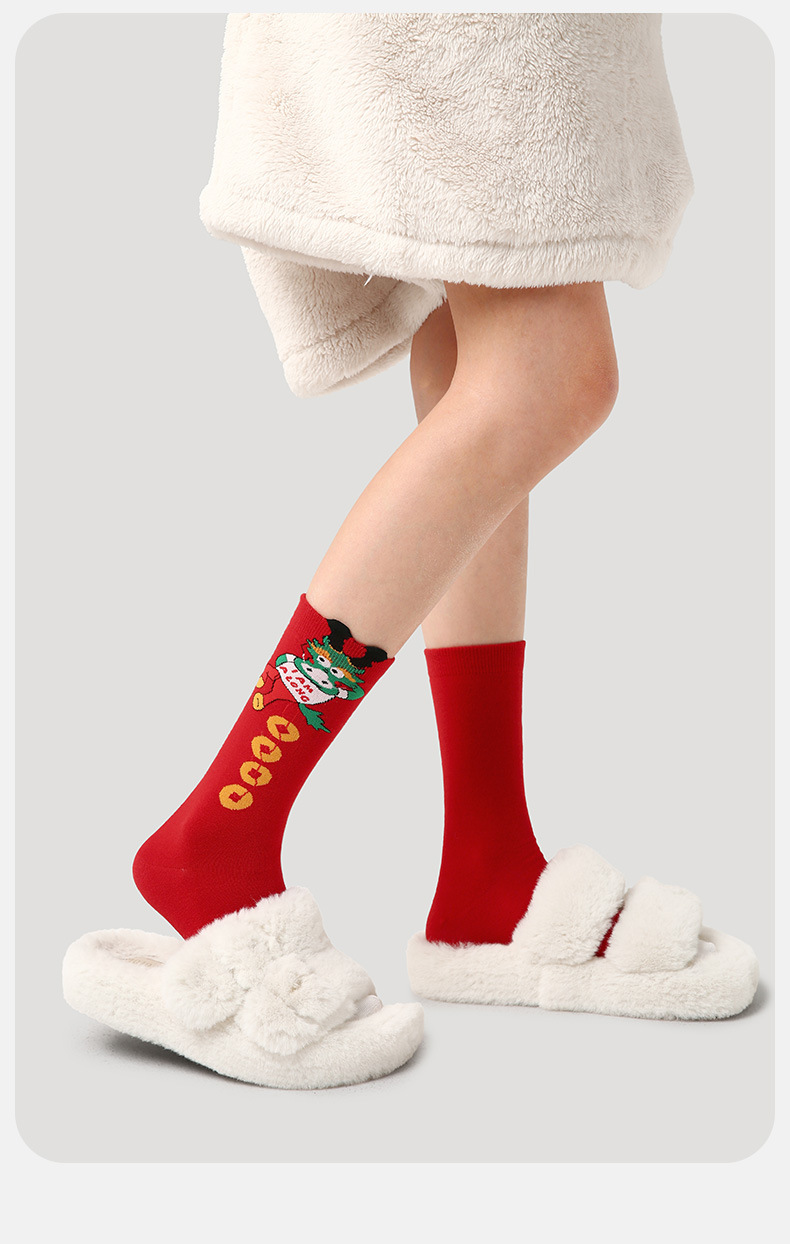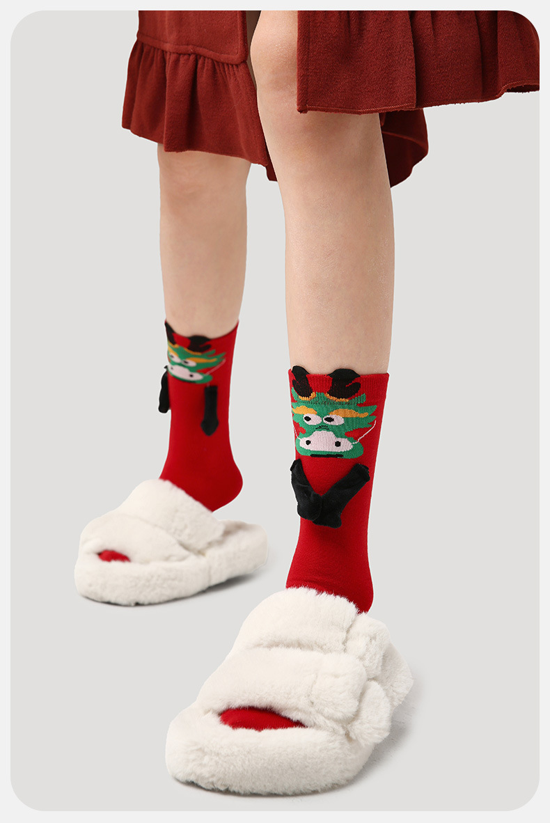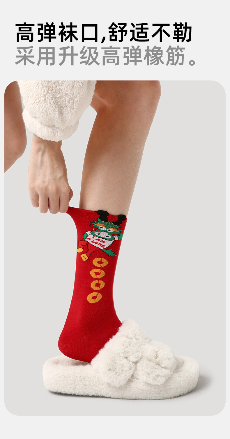3 쌍-르네상스 새해 빨간 양말 겨울 선물 상자 뼈없는 패션 여성 양말 미드 튜브 양말
