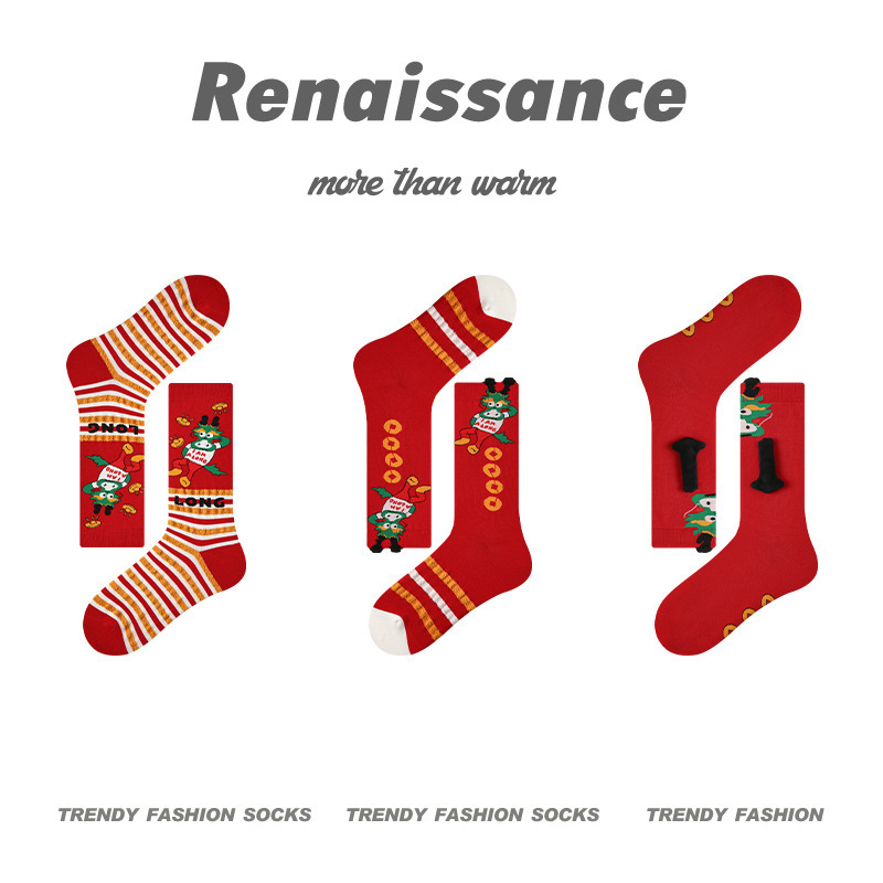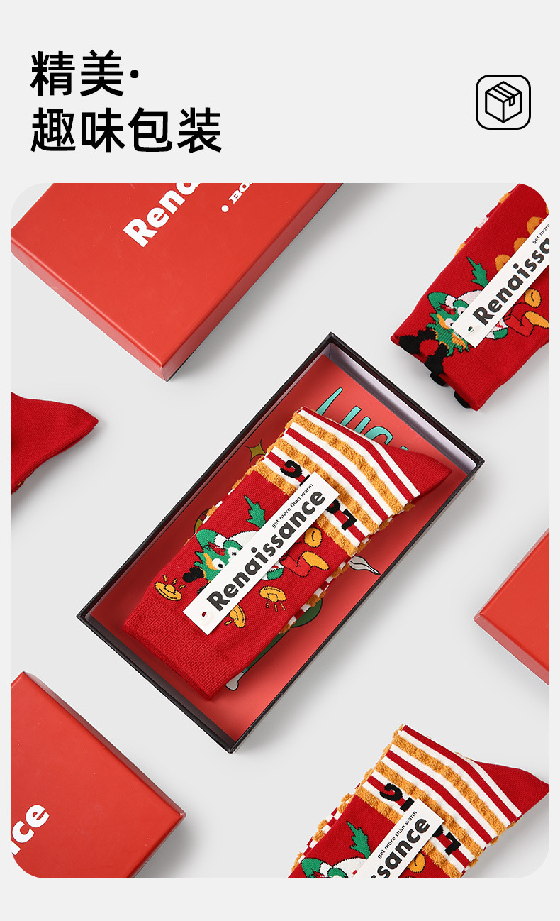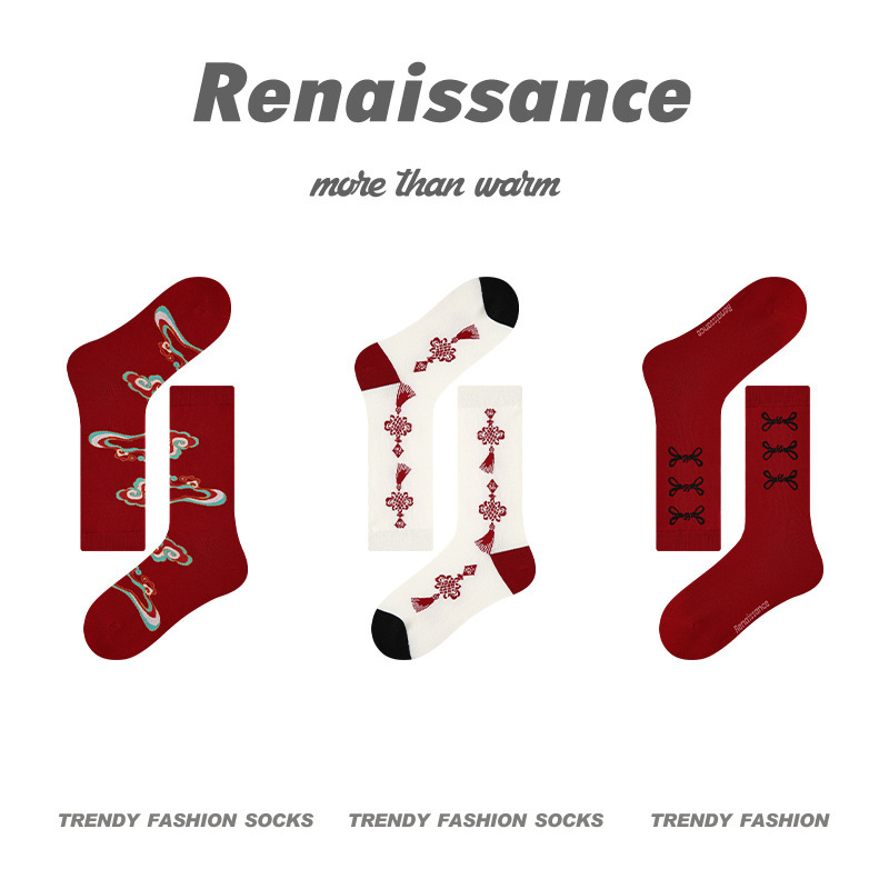3 쌍-르네상스 새해 빨간 양말 겨울 선물 상자 뼈없는 패션 여성 양말 미드 튜브 양말스토어 가기