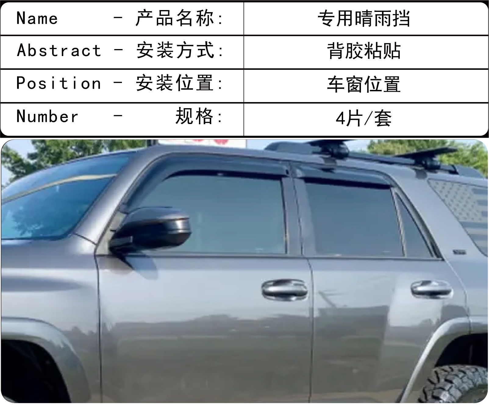대외 무역 적용 가능한 2003-21 새로운 도요타 슈퍼 4 러너 창 커버 비-증거 확장 자동차 비 방지