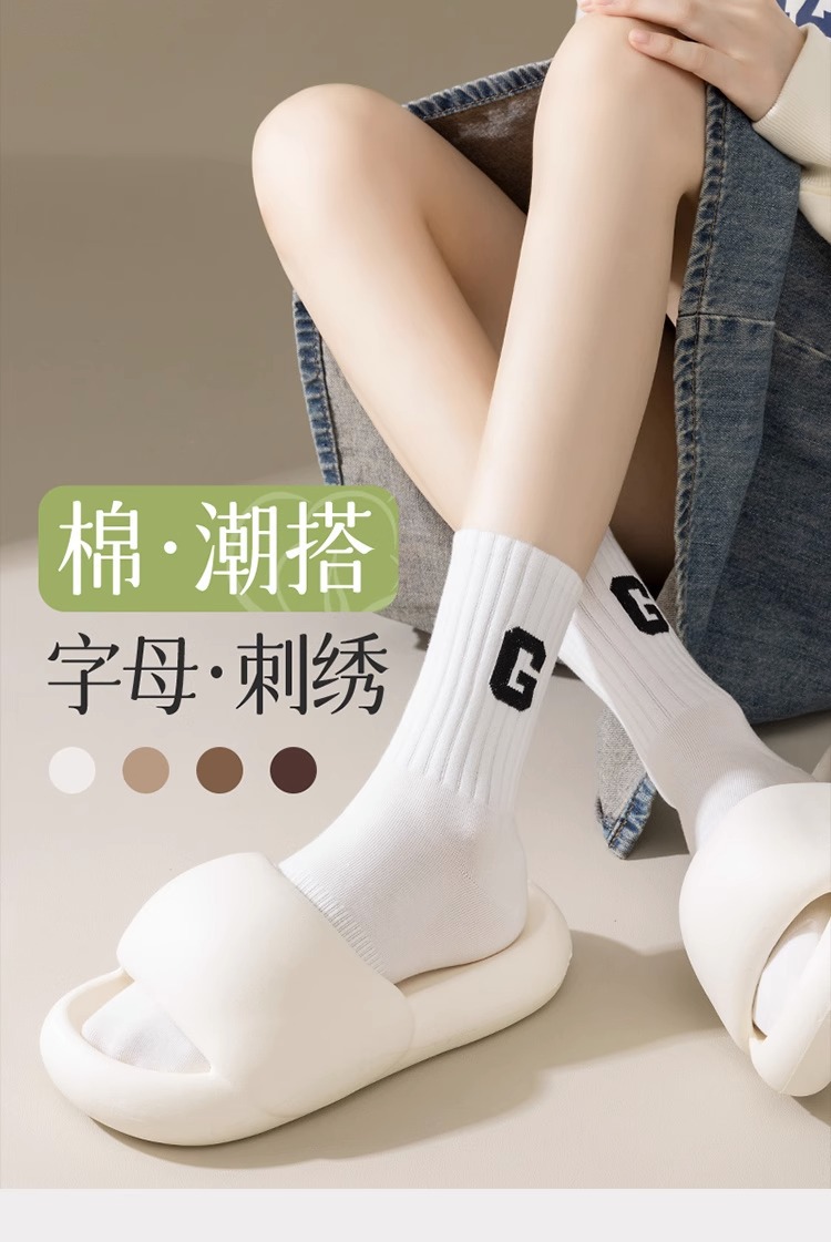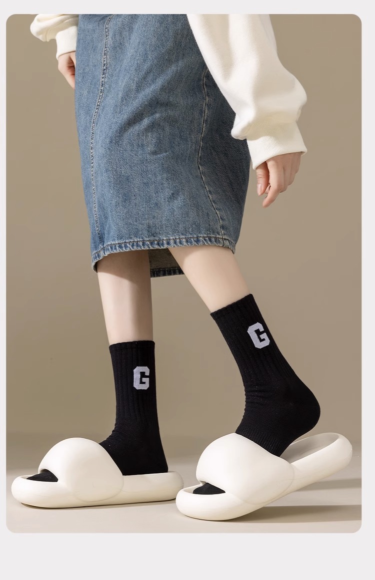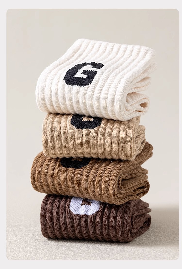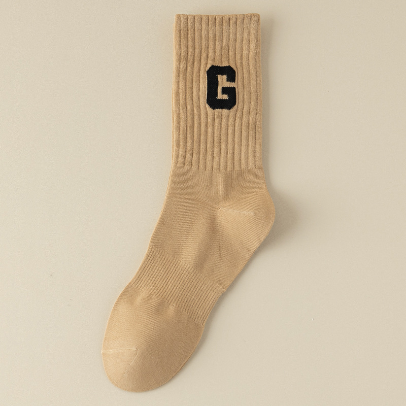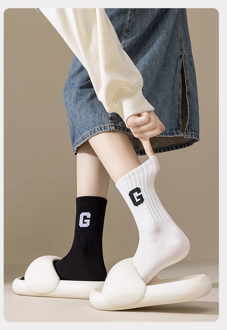 새로운 남성과 여성의 트렌디 한 양말 땀 흡수 냄새 방지 고탄성 스포츠 캐주얼 양말 가을과 겨울 패션 편지 단색 심플 면 양말