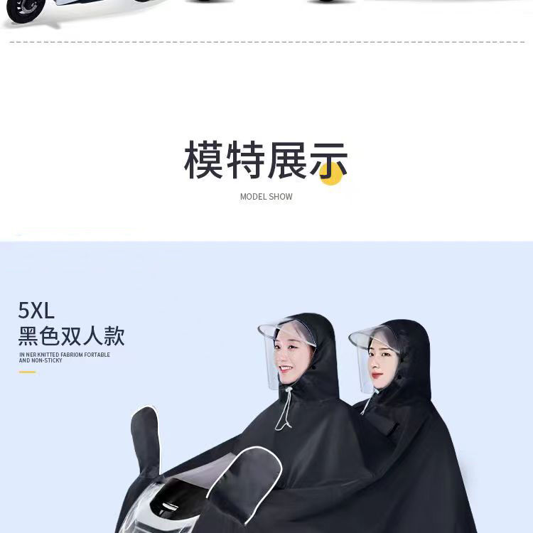 배터리 전기 오토바이 판초 초대형 두꺼운 전신 비 폭풍 방지 싱글 및 더블 사이클링을위한 특수 비옷