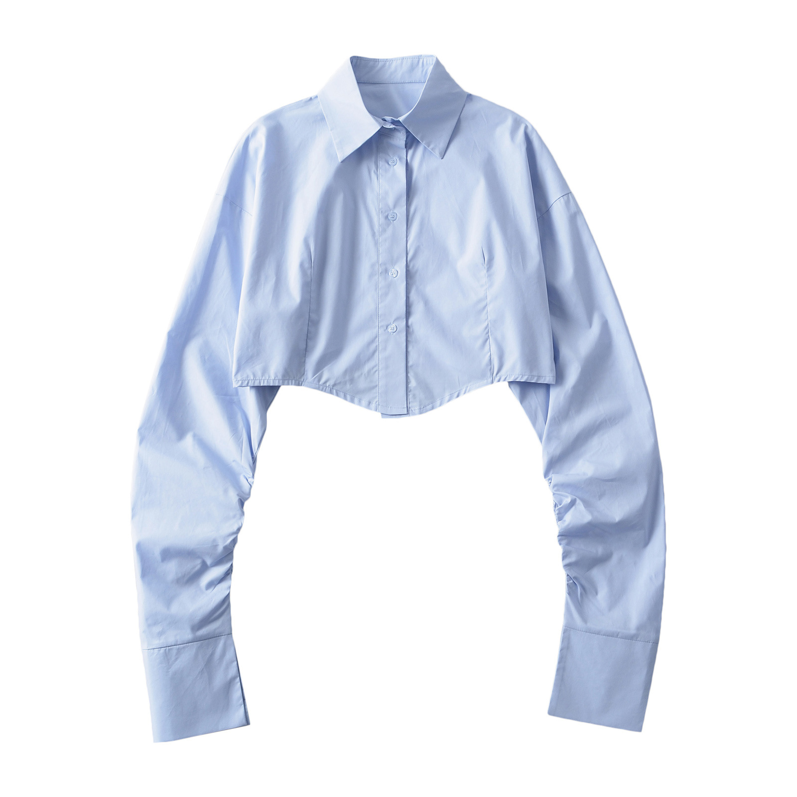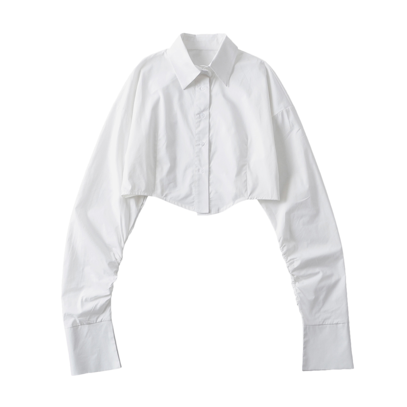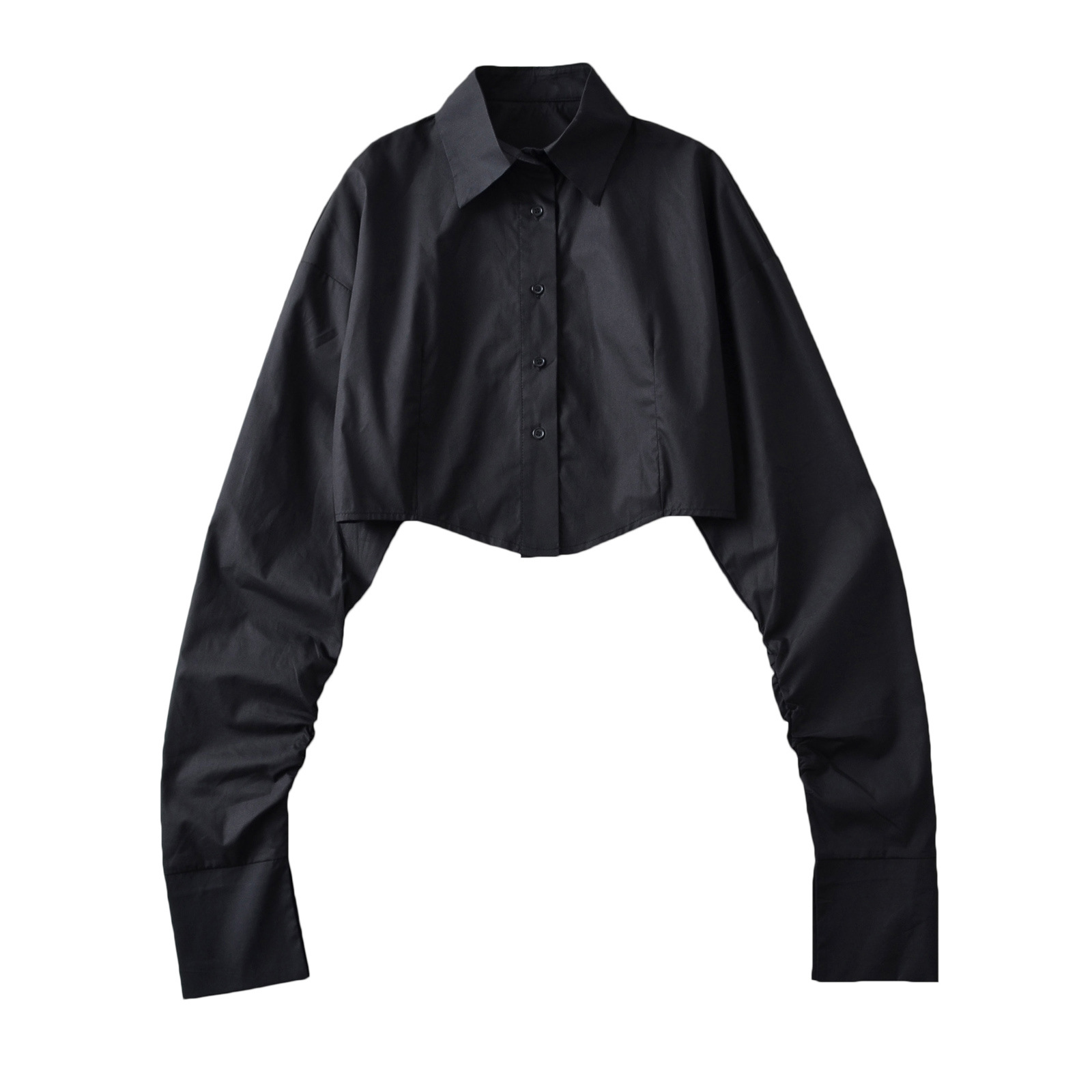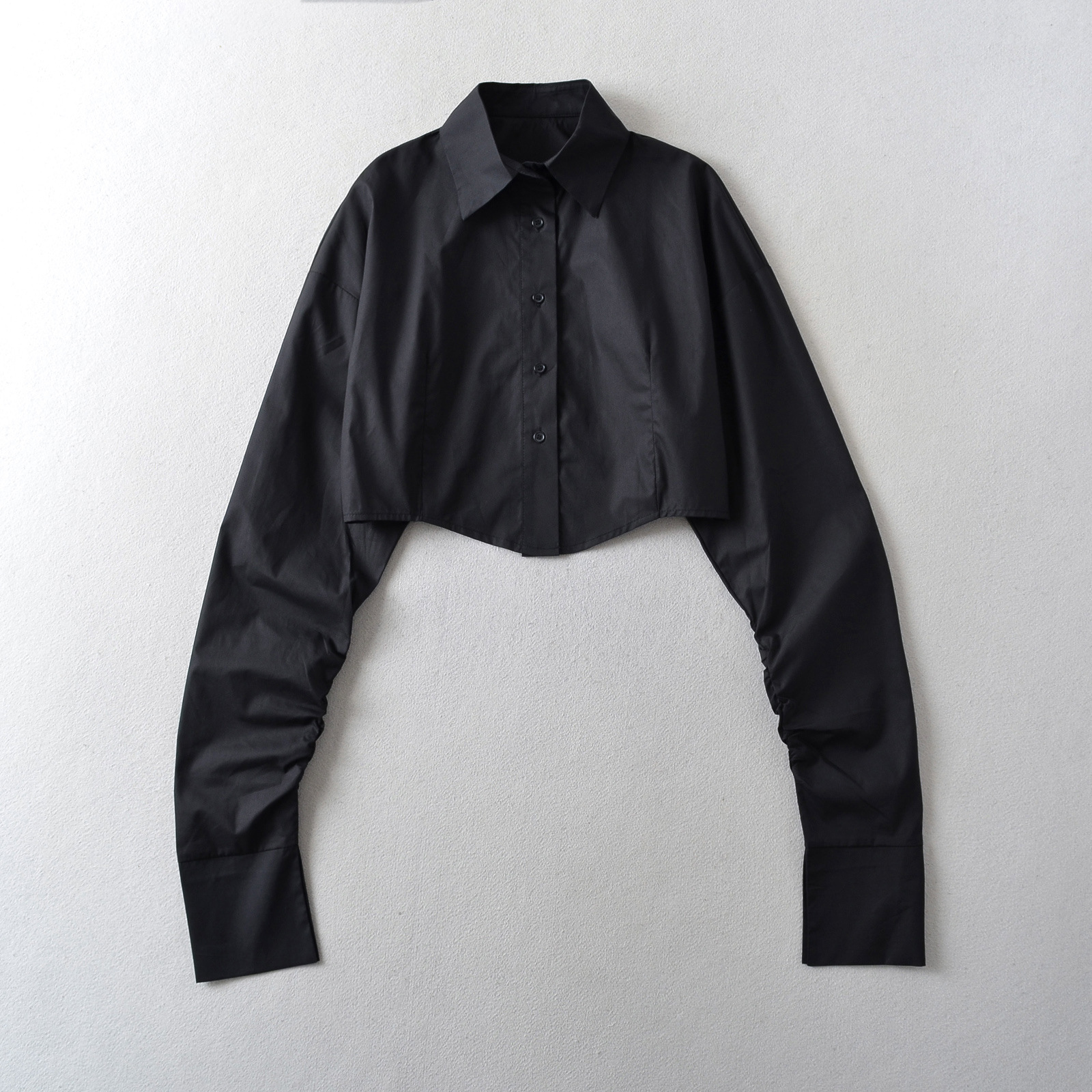 가을 2023 새로운 스파이스 걸 라펠 싱글 브레스트 짧은 배꼽 오픈 카디건 여성용 느슨한 캐주얼 주름 슈퍼 긴 소매 셔츠
