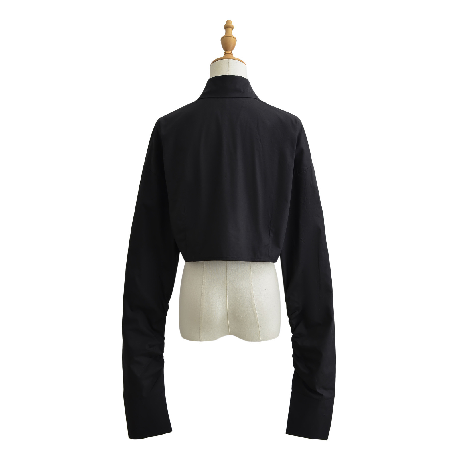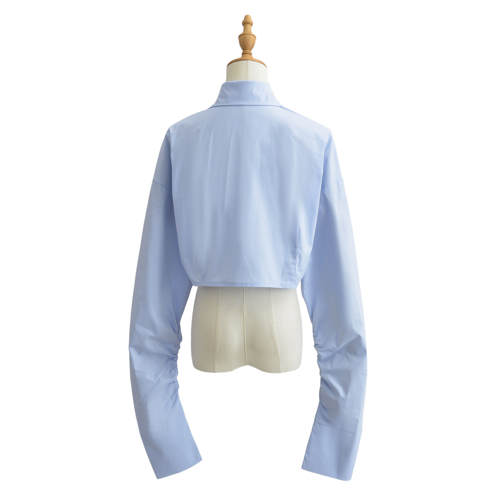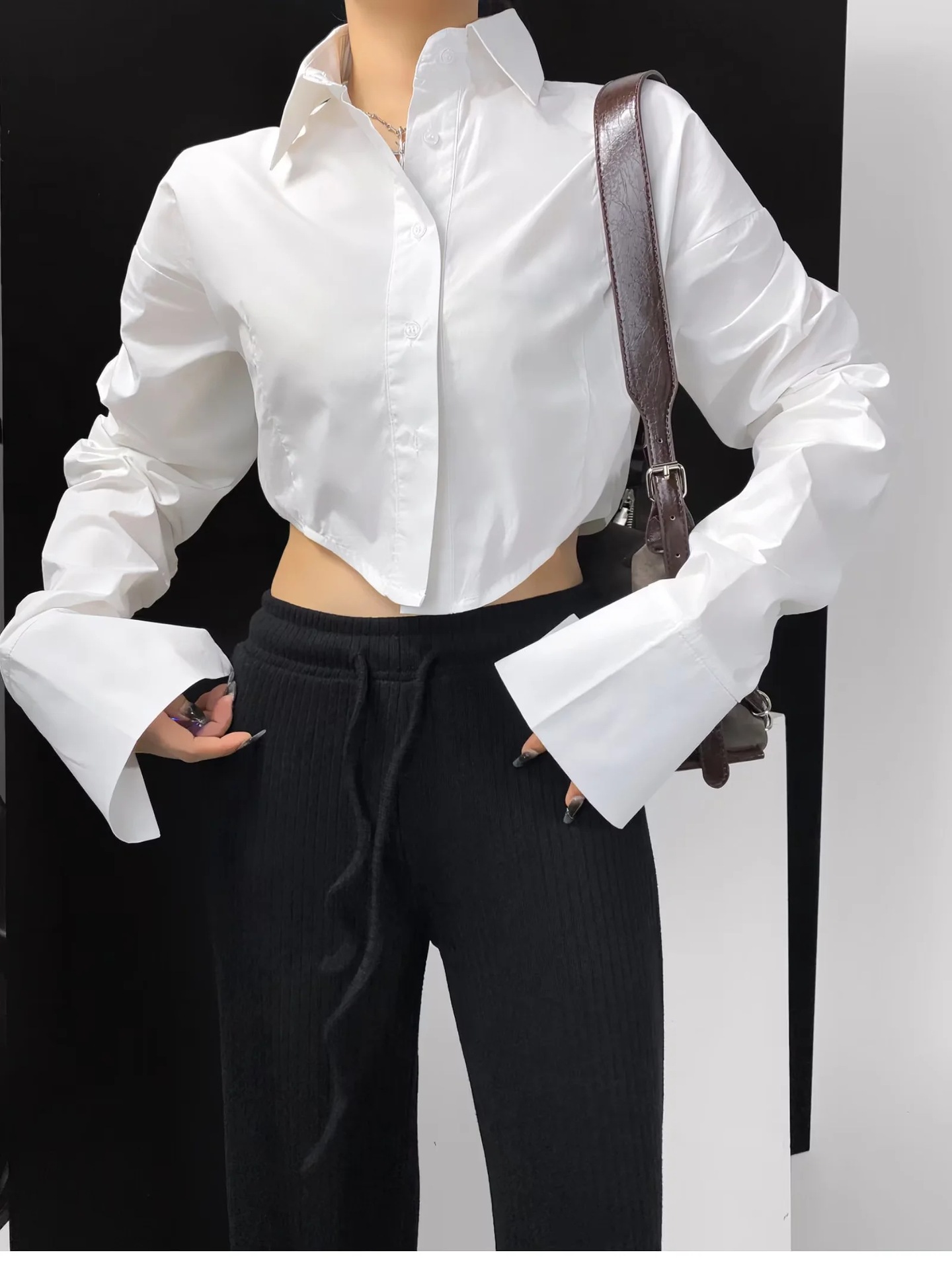 가을 2023 새로운 스파이스 걸 라펠 싱글 브레스트 짧은 배꼽 오픈 카디건 여성용 느슨한 캐주얼 주름 슈퍼 긴 소매 셔츠