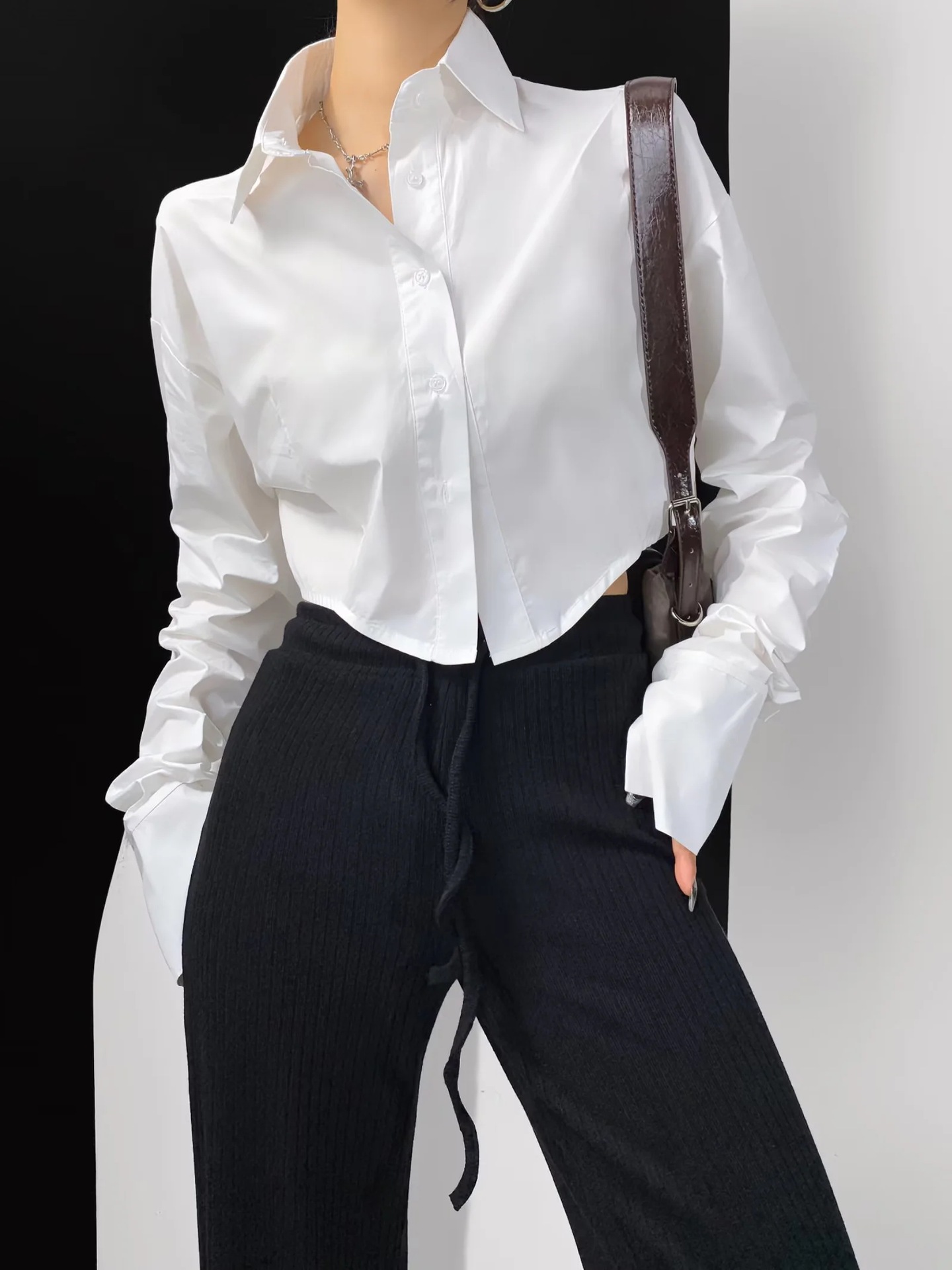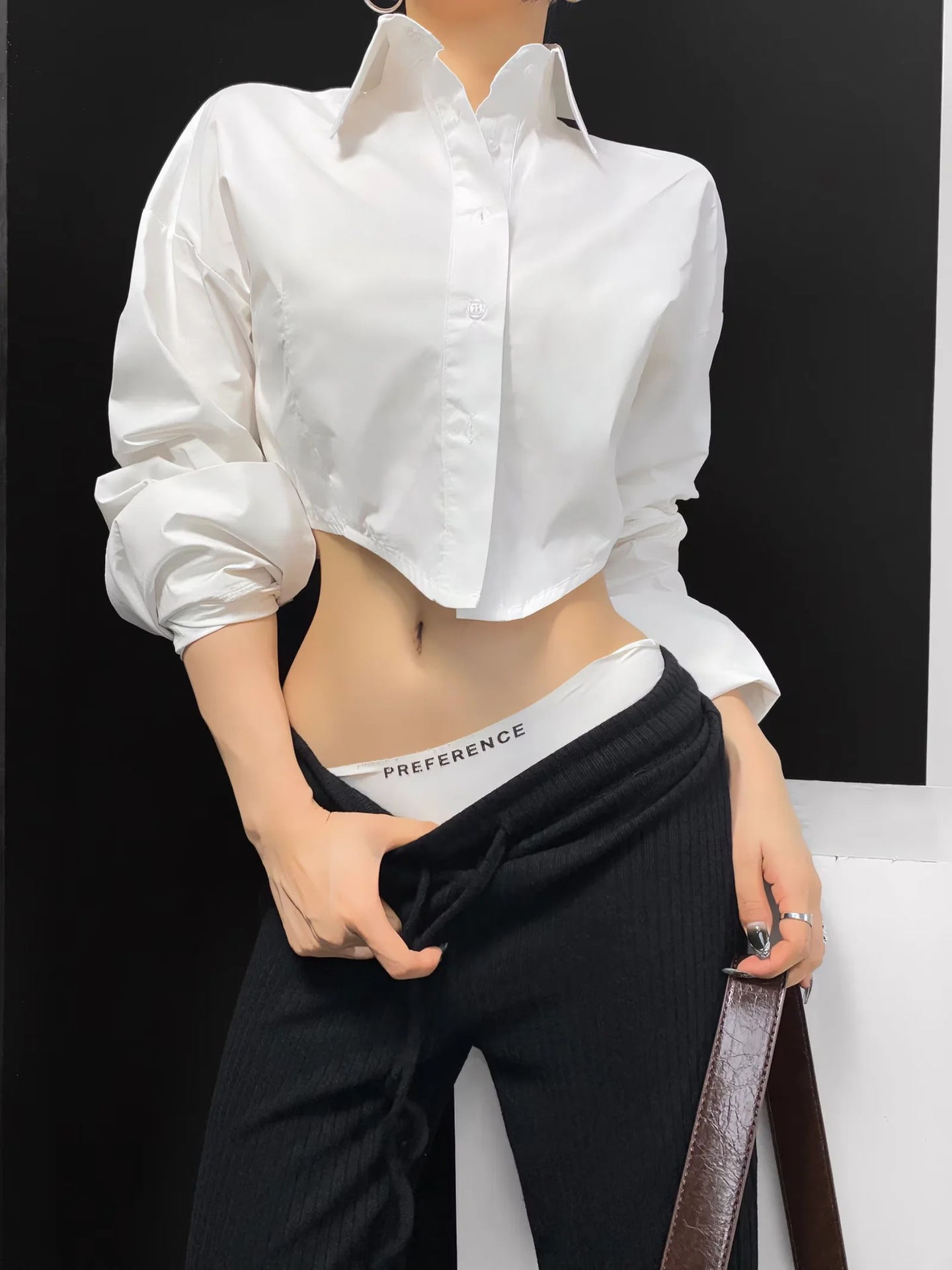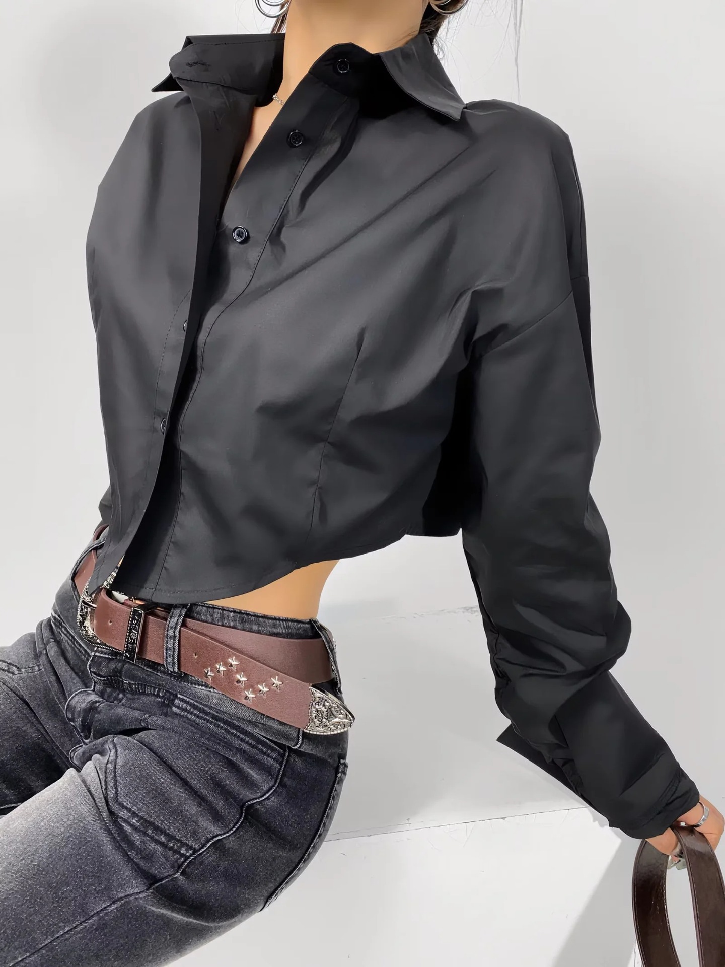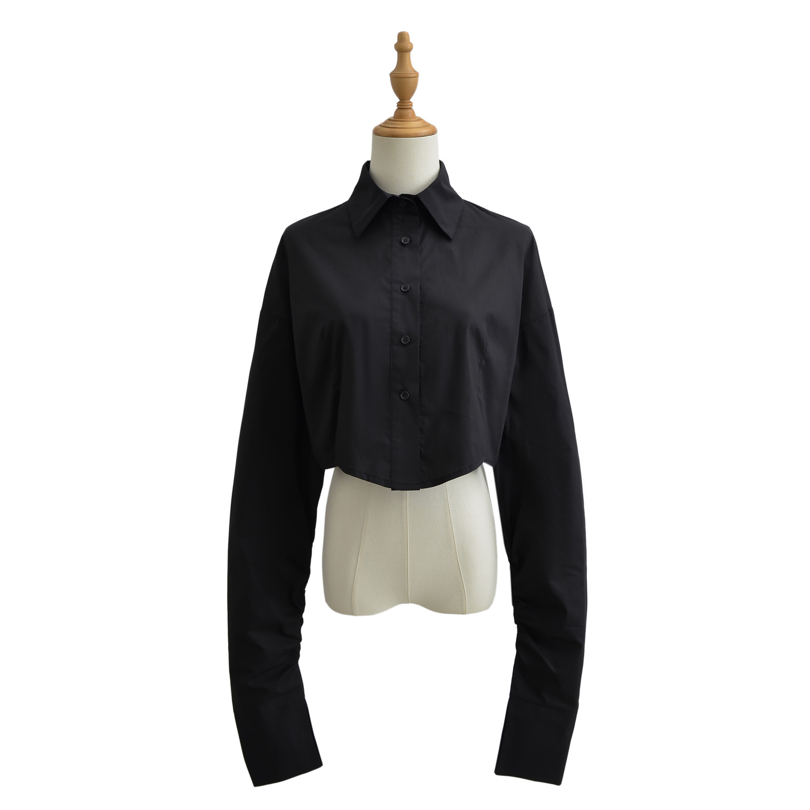 가을 2023 새로운 스파이스 걸 라펠 싱글 브레스트 짧은 배꼽 오픈 카디건 여성용 느슨한 캐주얼 주름 슈퍼 긴 소매 셔츠