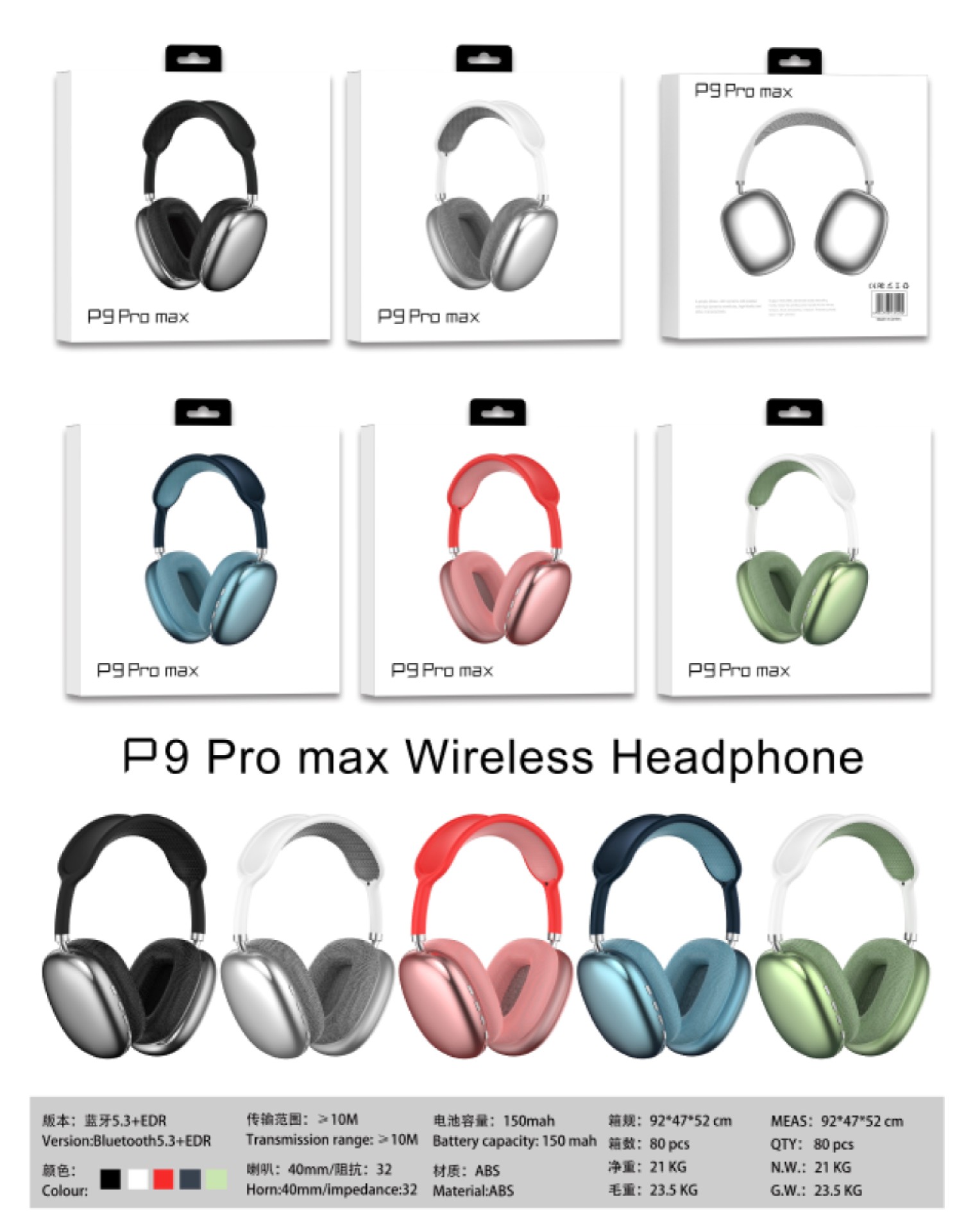 P9Promax 헤드셋 무선 블루투스 스테레오 헤드폰 타입-C 휴대폰 이어폰 공장 직판