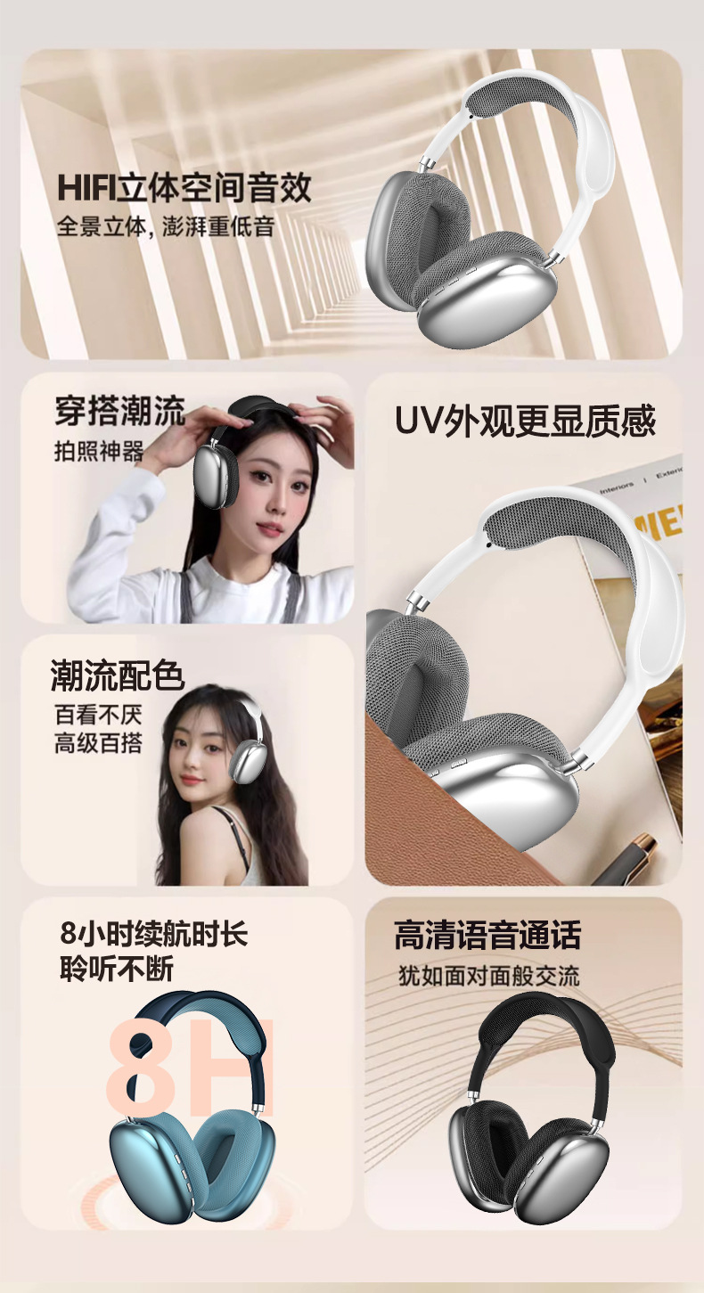 P9Promax 헤드셋 무선 블루투스 스테레오 헤드폰 타입-C 휴대폰 이어폰 공장 직판스토어 가기