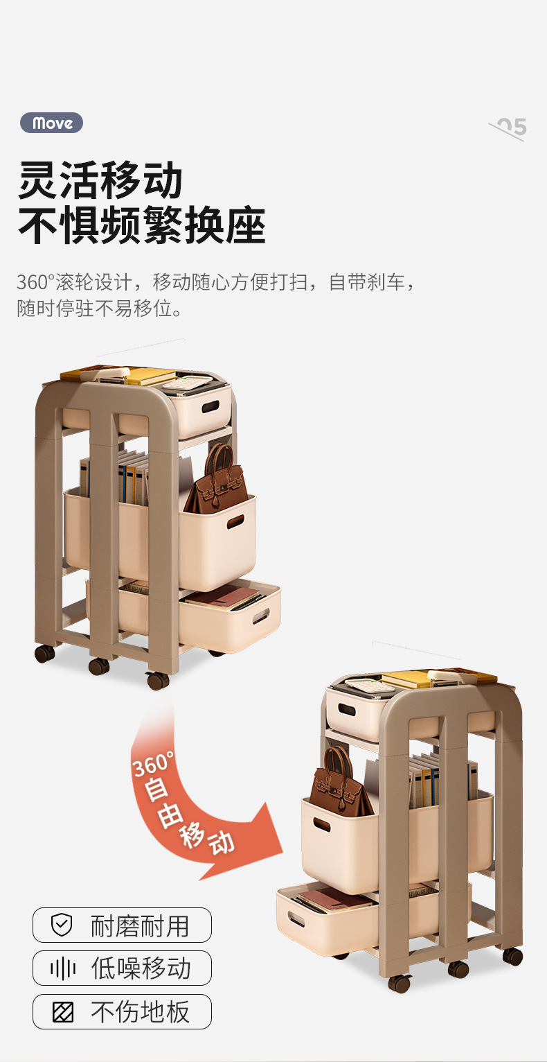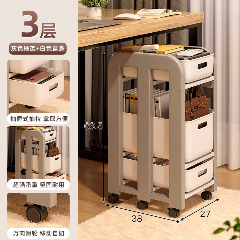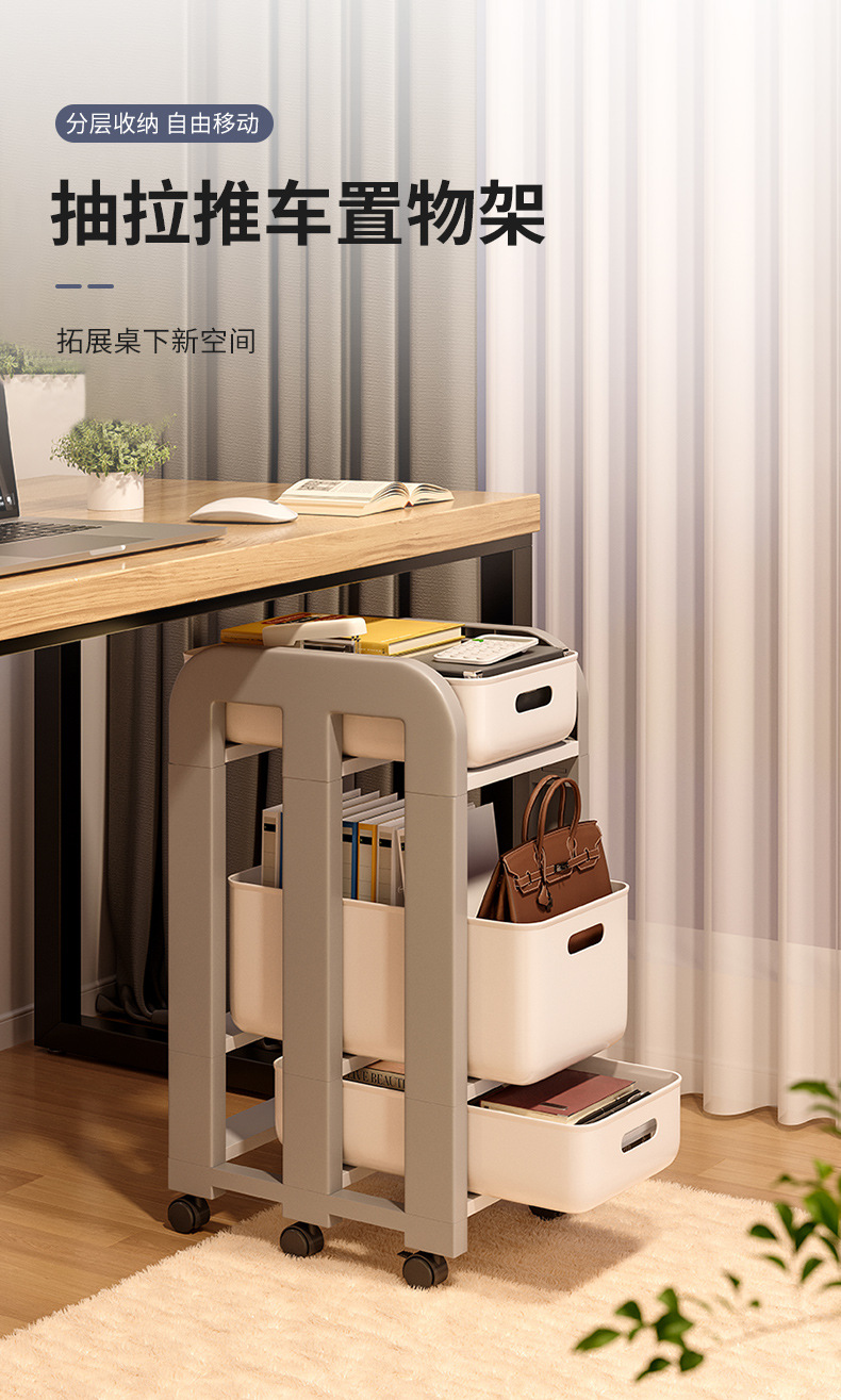 书包置物架落地桌下工位滑轮小推车办公室书架桌面整理书本收纳盒
