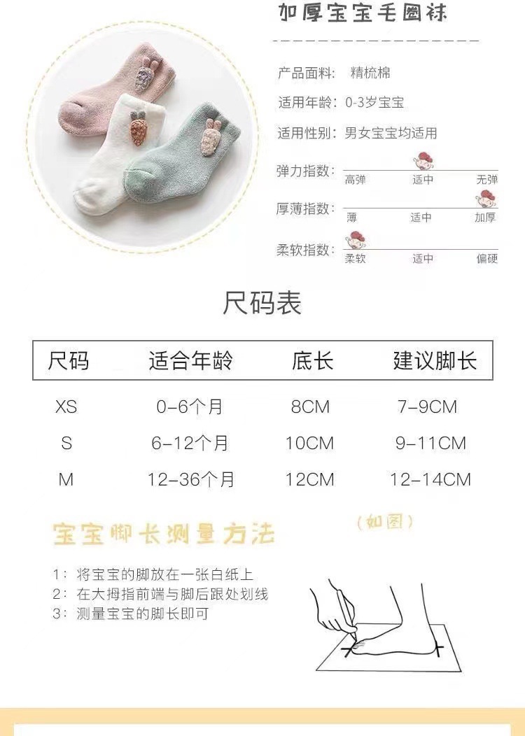 가을과 겨울 아기 양말 테리 기모 두꺼운 미드 튜브 아기 양말 어린이 따뜻한 양말 뼈없는 클래스 A 신생아 양말스토어 가기
