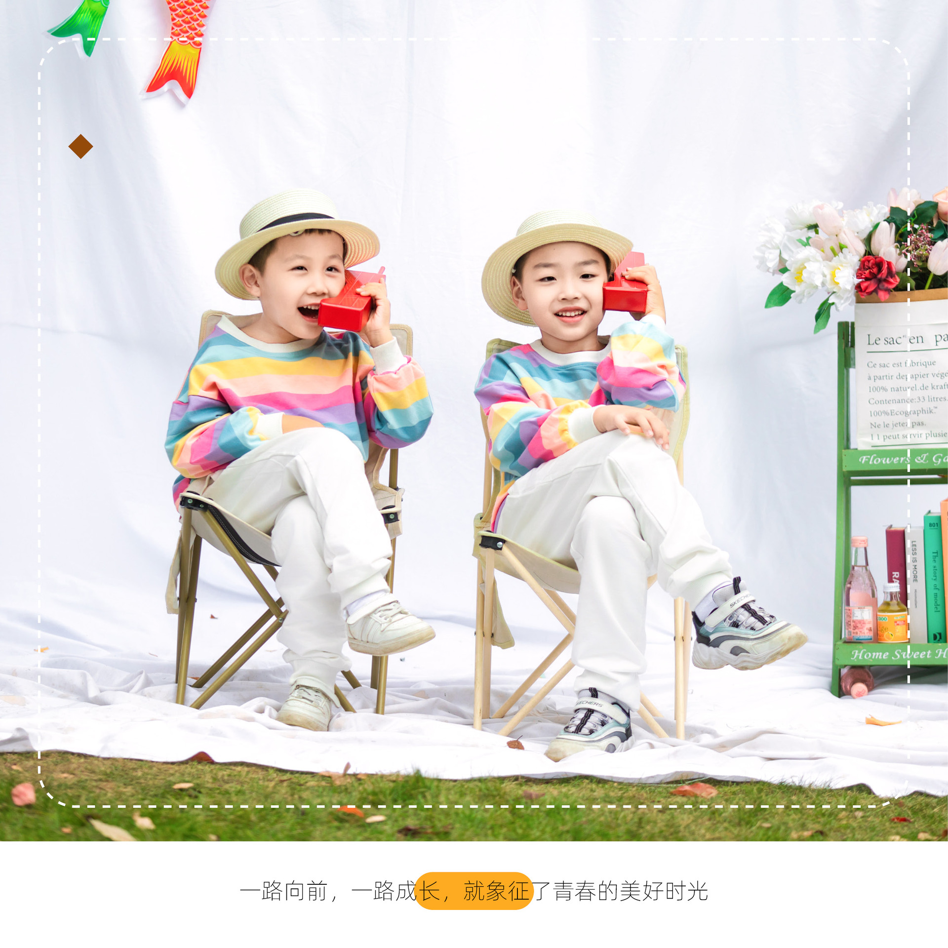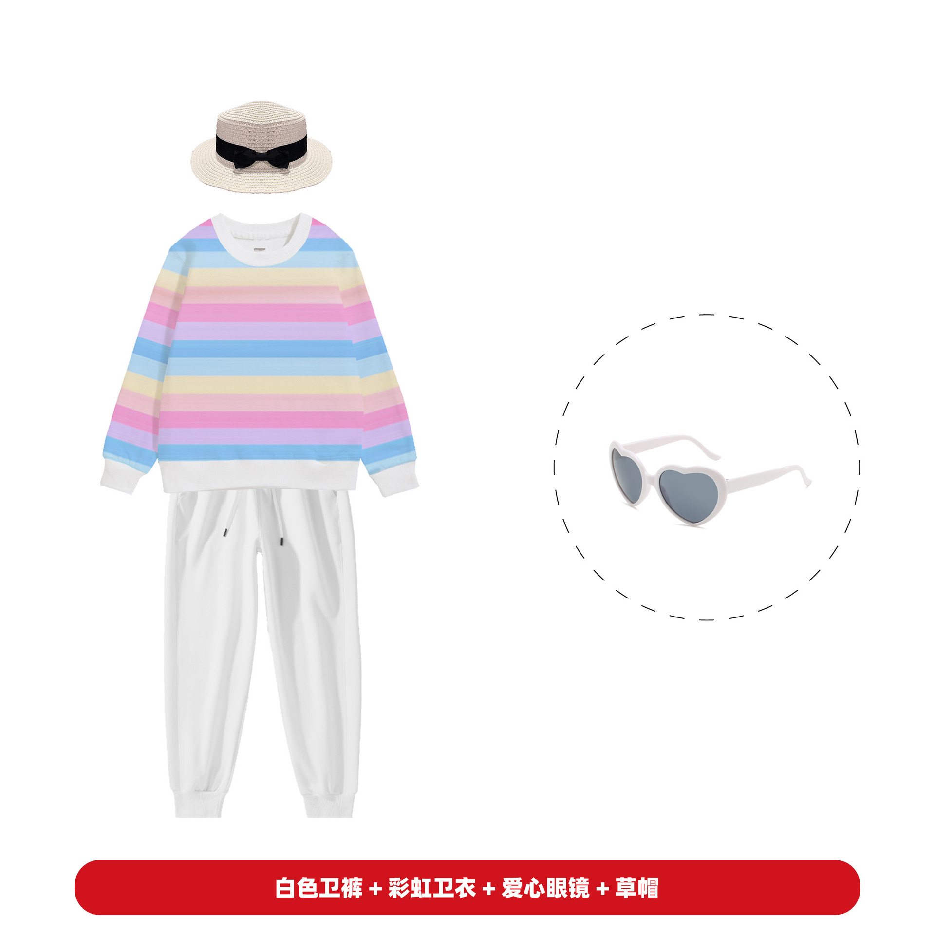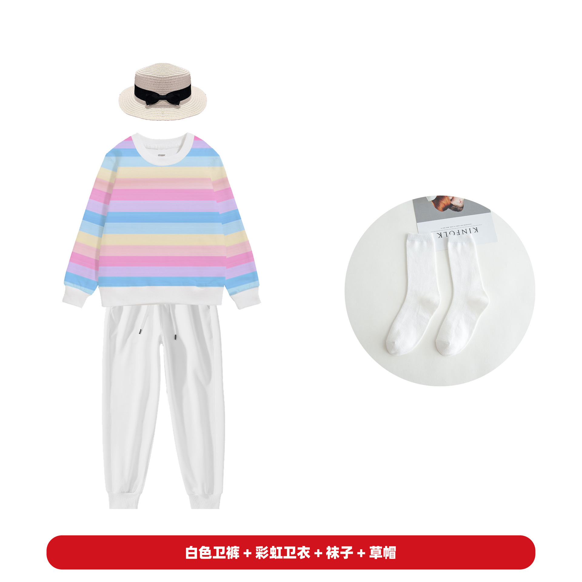 • 레인보우 스웨터 + 흰색 스웨터 + 밀짚모자