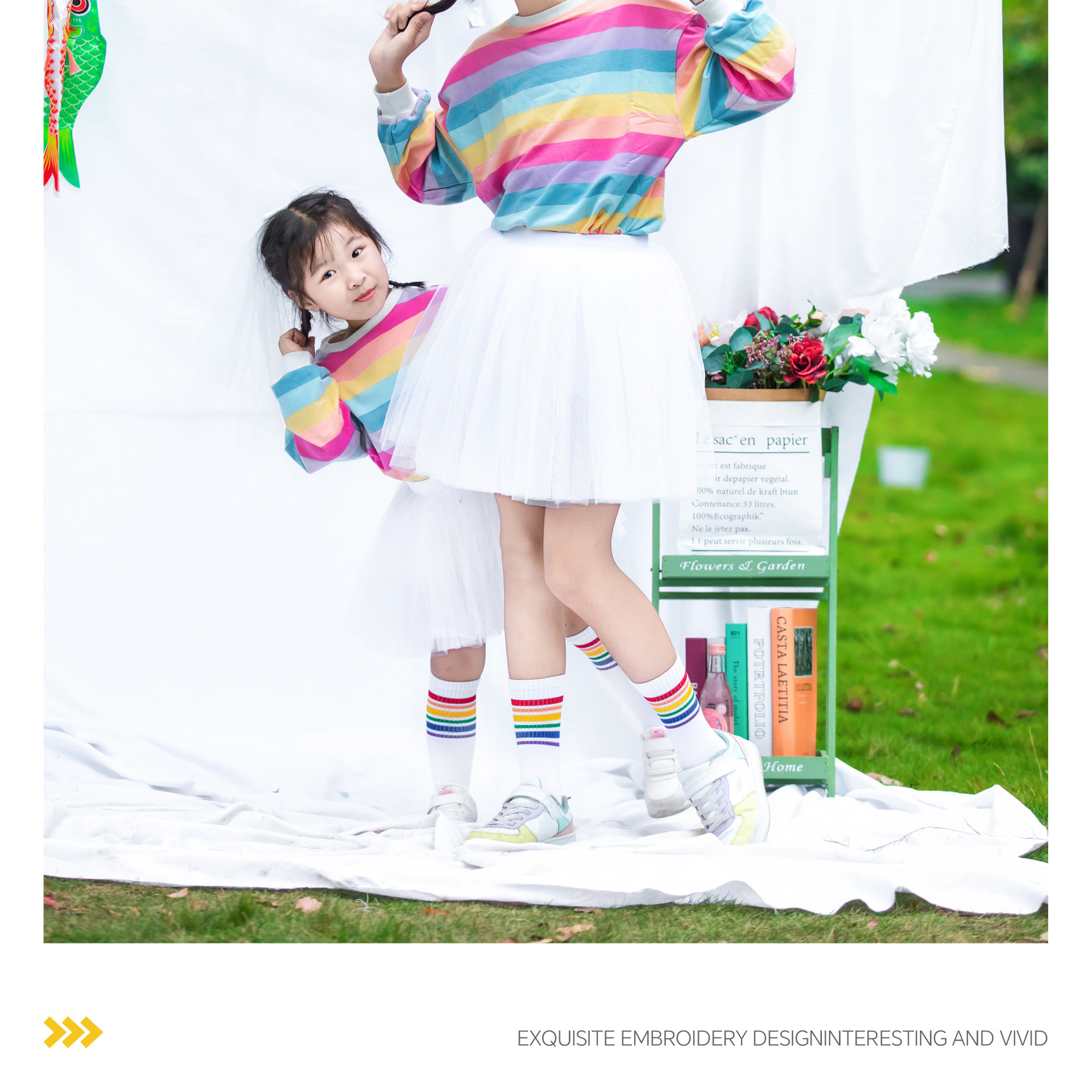 • 레인보우 스웨터 + 화이트 투투 스커트 + 레인보우 양말