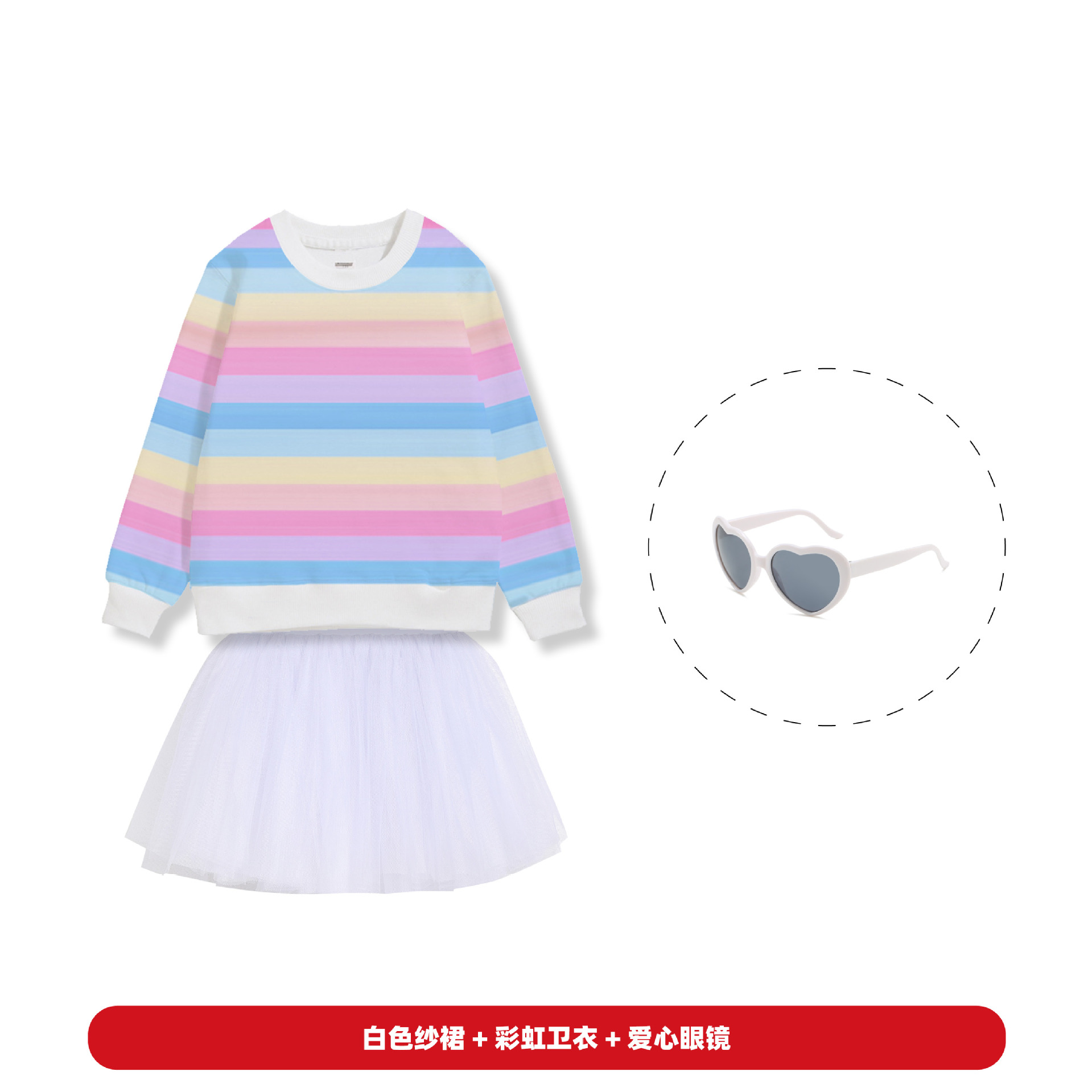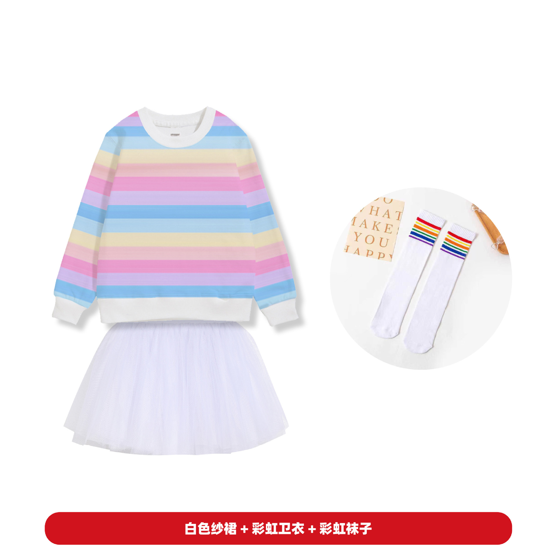 • 레인보우 스웨터 + 화이트 투투 스커트 + 베일 + 레인보우 양말