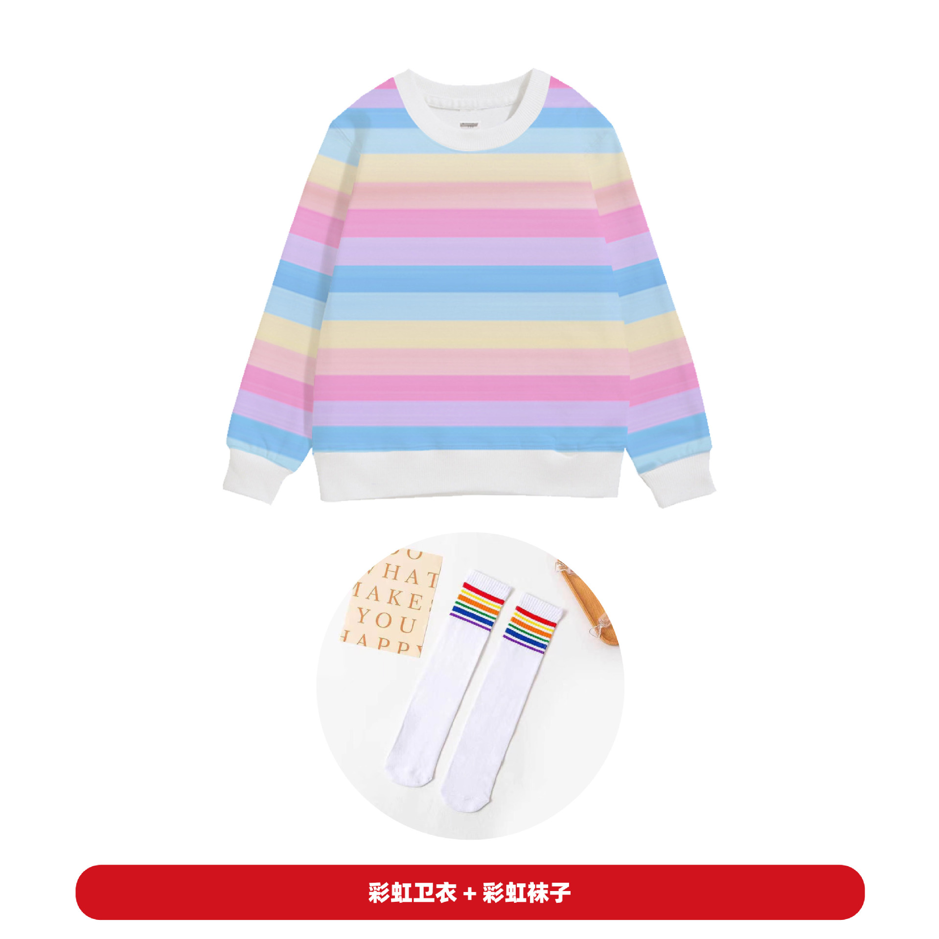 • 레인보우 스웨터 + 흰색 스웨터 + 흰색 양말