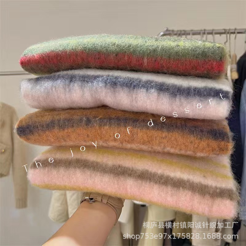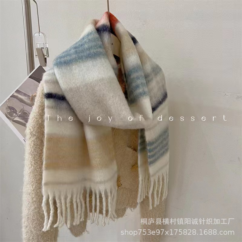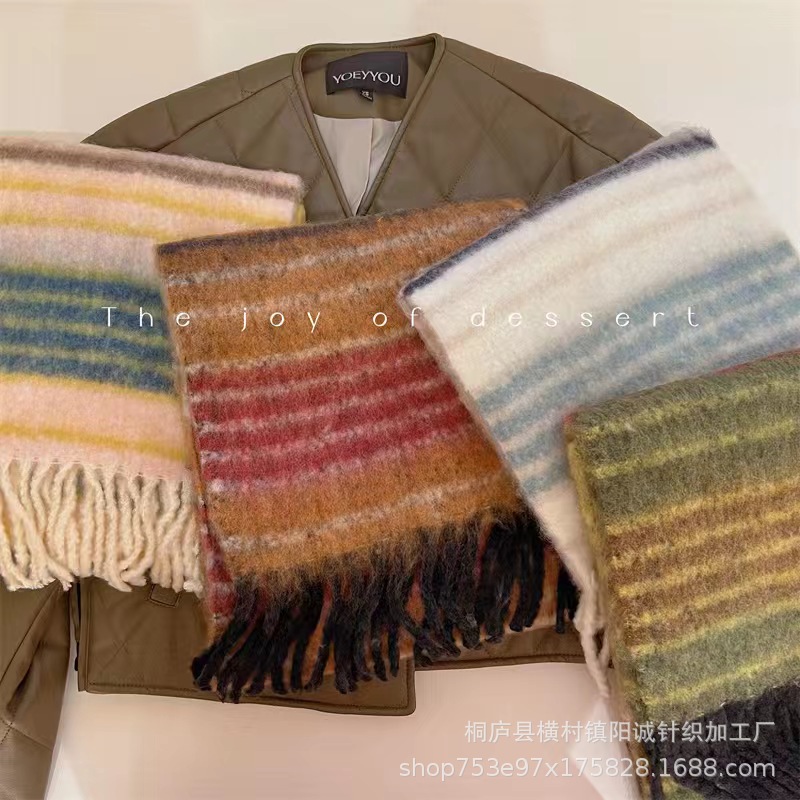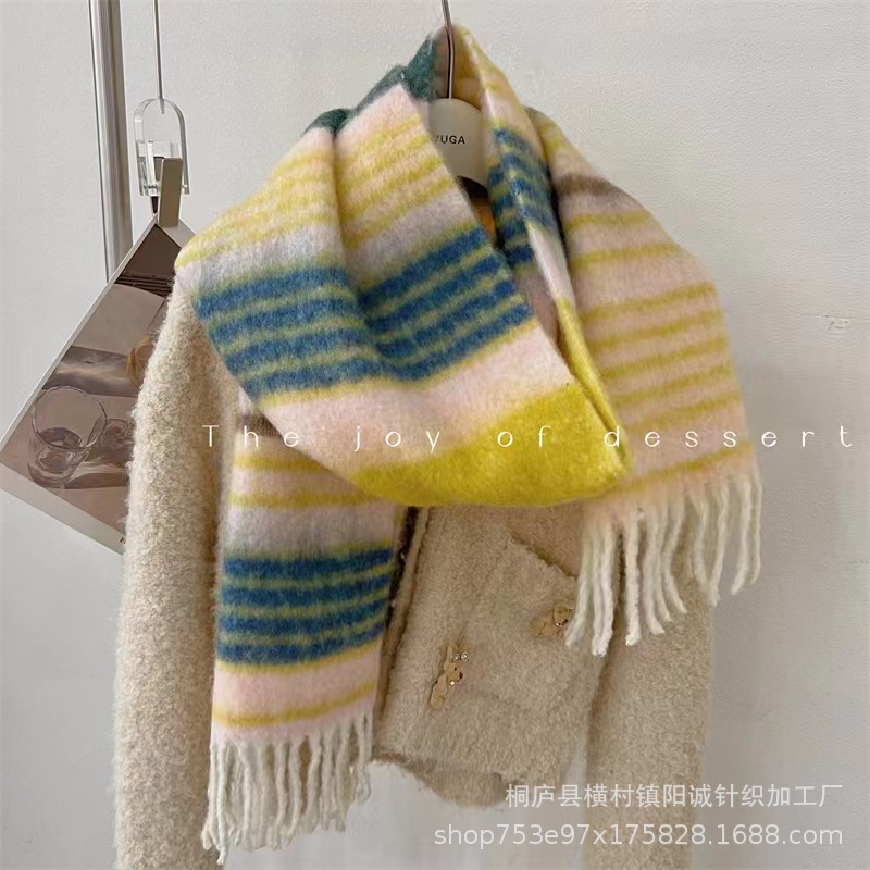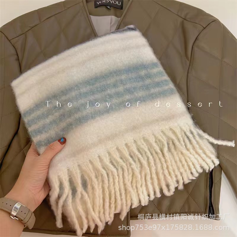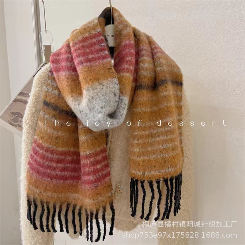 2023 새로운 서양 여왕 어머니 행성 스카프 여성 가을, 겨울 술 수 놓은 줄무늬 양모 두꺼운 목도리 패션스토어 가기