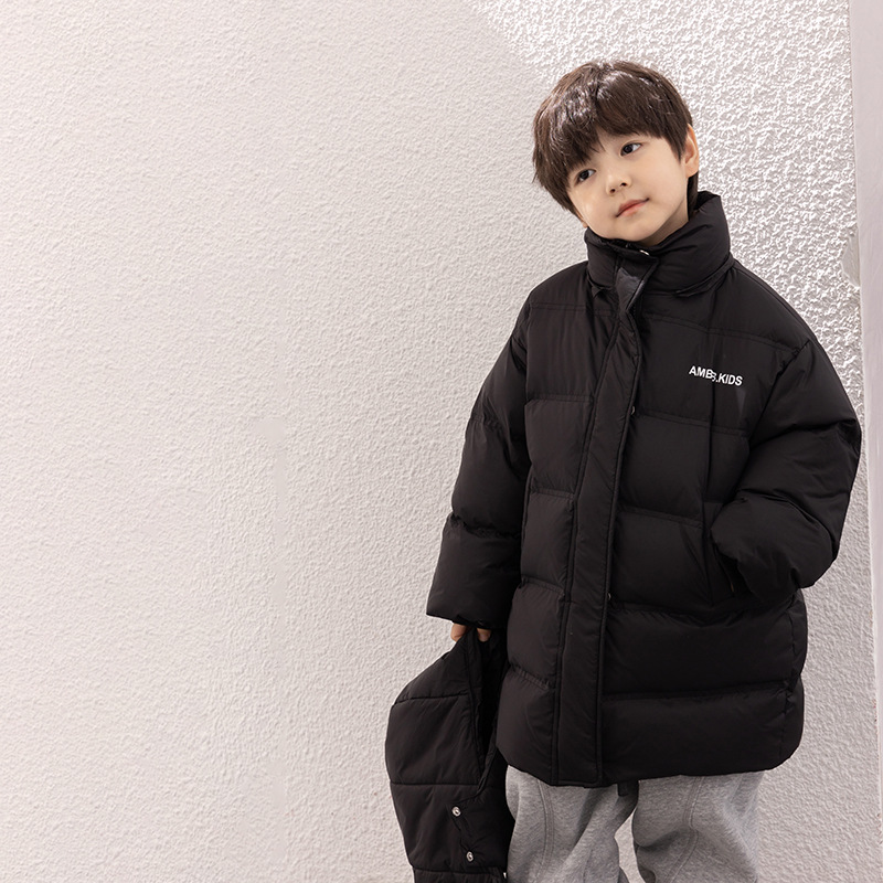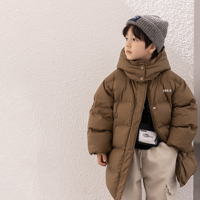 【클리어런스 세일】아동용 90% 백색 오리털 두꺼운 브레드 재킷 남녀공용 따뜻한 레터링 후드 다운 재킷스토어 가기