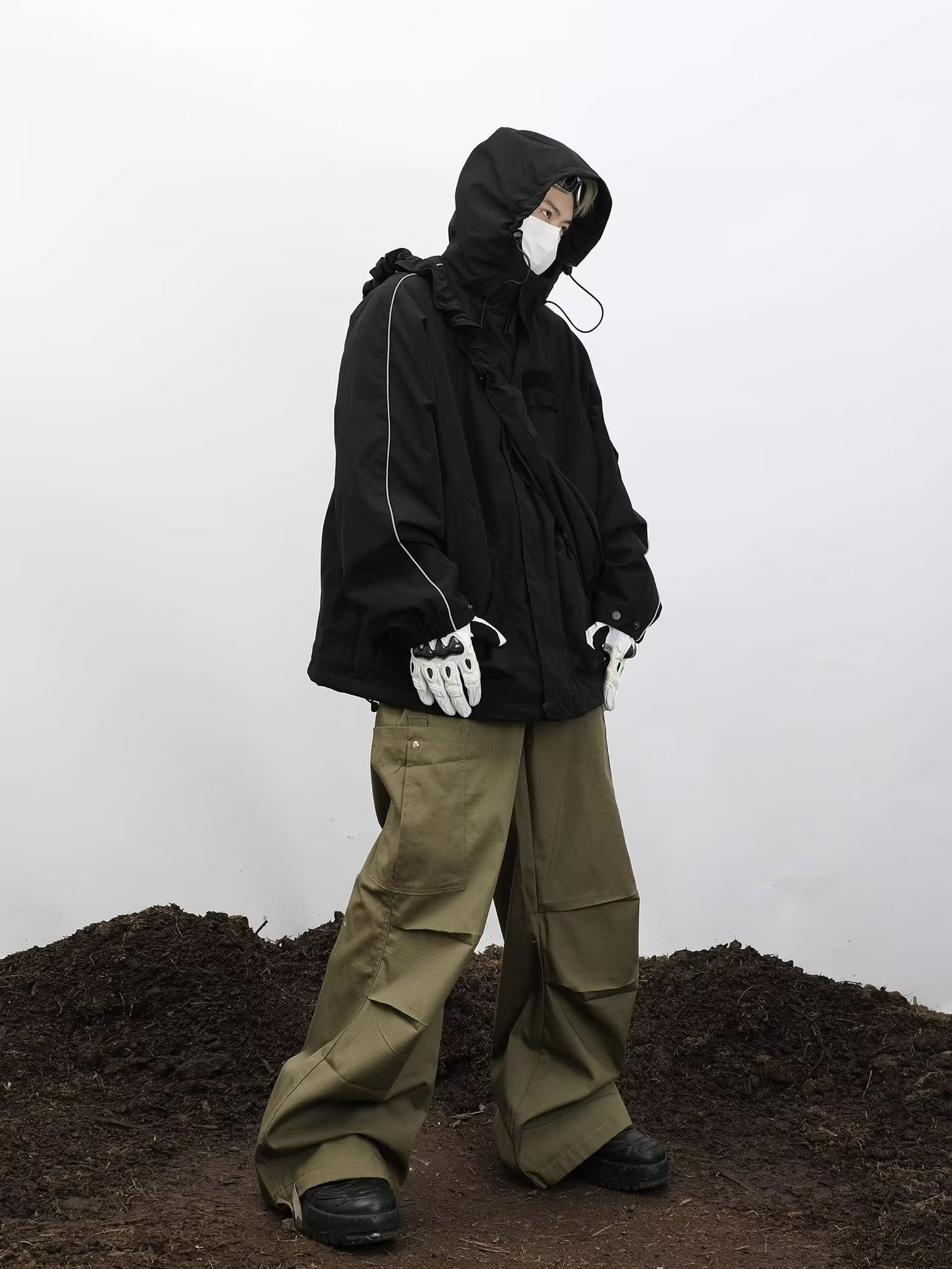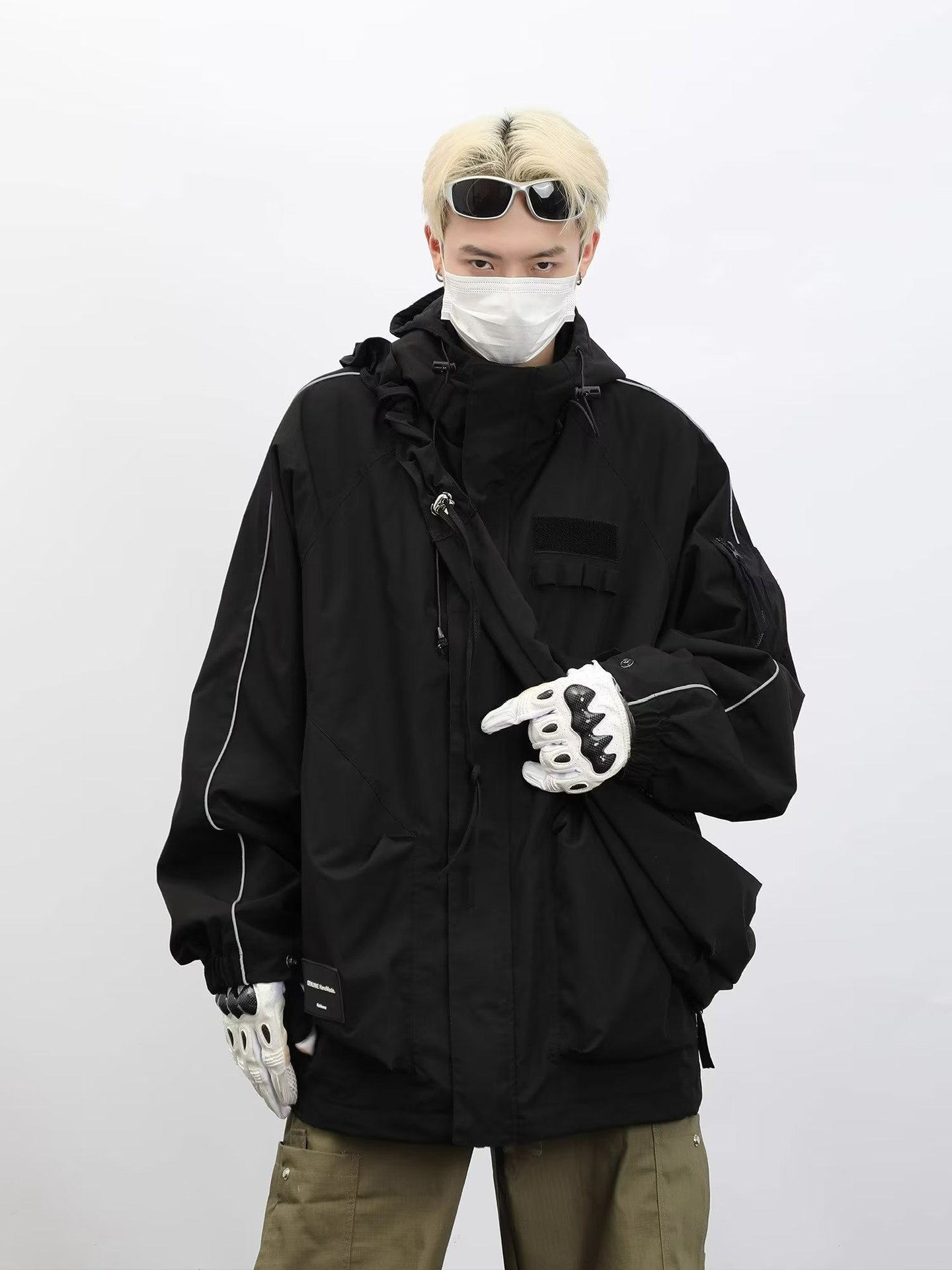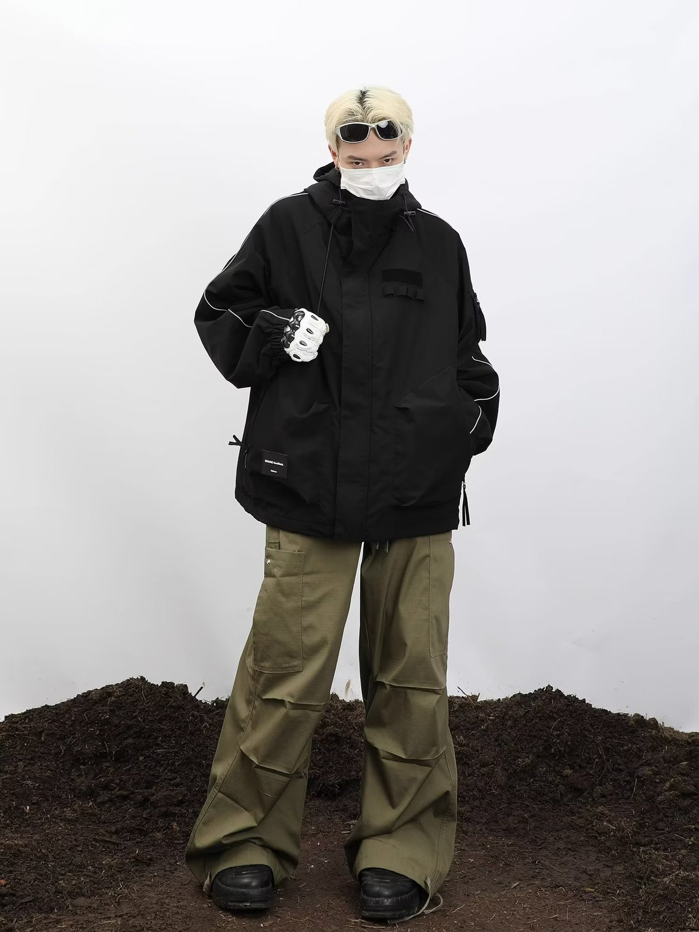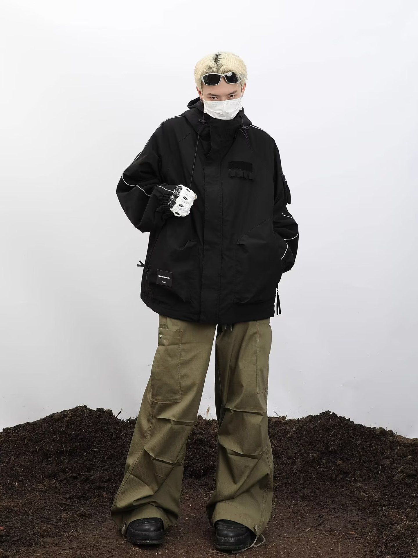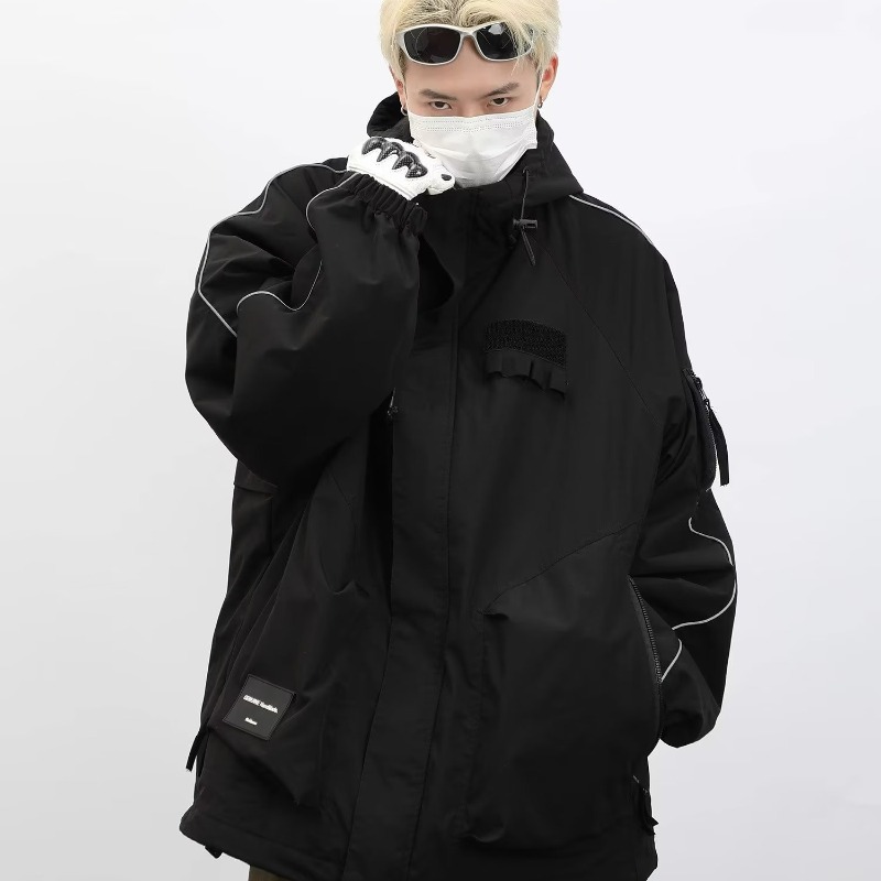 아메리칸 스타일 힙합 블랙 사무라이 상얀 충전 옷 면 패딩 재킷 남성 기능성 느슨한 방수 재킷 오버사이즈 트렌디 브랜드스토어 가기