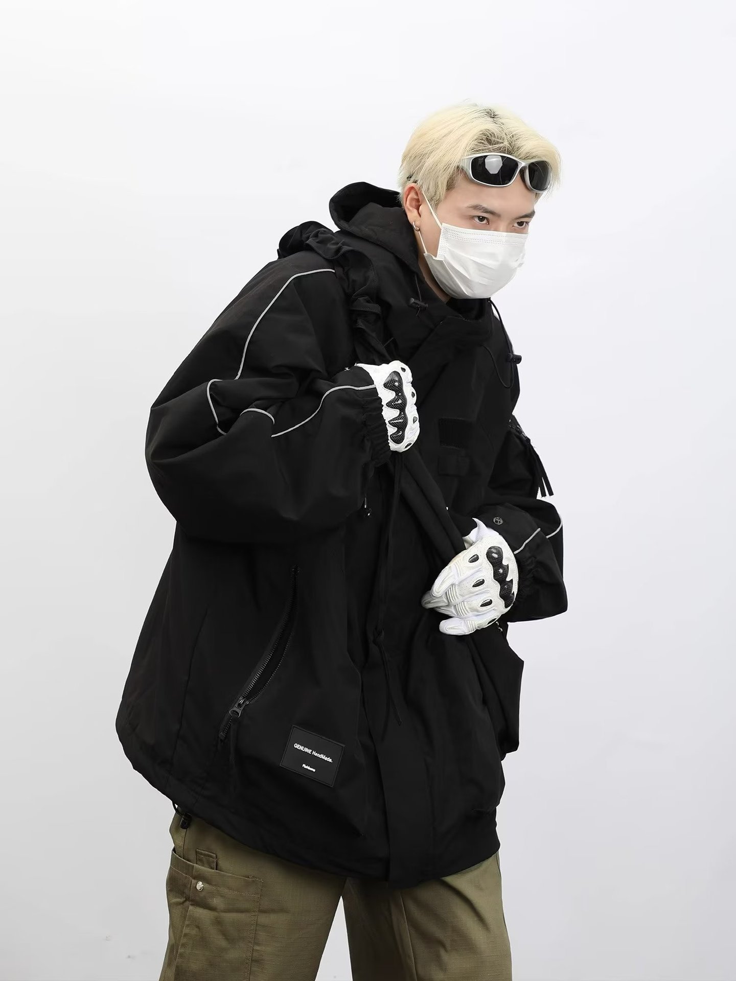아메리칸 스타일 힙합 블랙 사무라이 상얀 충전 옷 면 패딩 재킷 남성 기능성 느슨한 방수 재킷 오버사이즈 트렌디 브랜드
