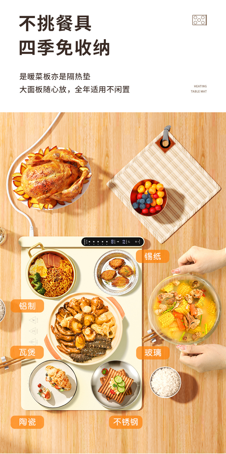 접이식 따뜻한 도마 가정용 난방 도마 따뜻한 접시 매트 다기능 유물 식탁 일정 온도 식품 단열 보드 선물스토어 가기