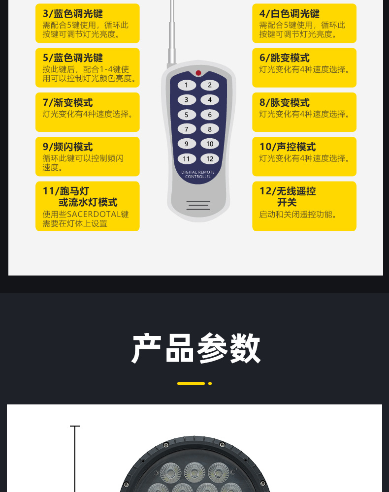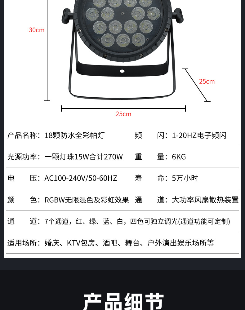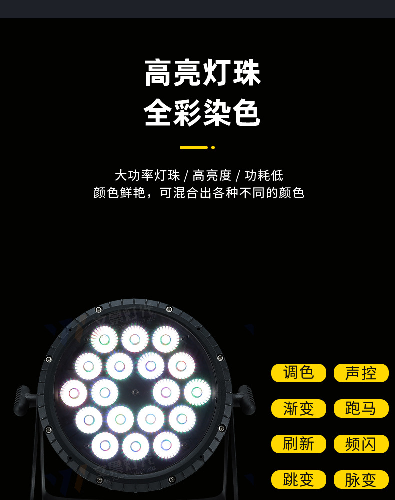 • 18개의 6-in-1 방수 포커싱 파 조명