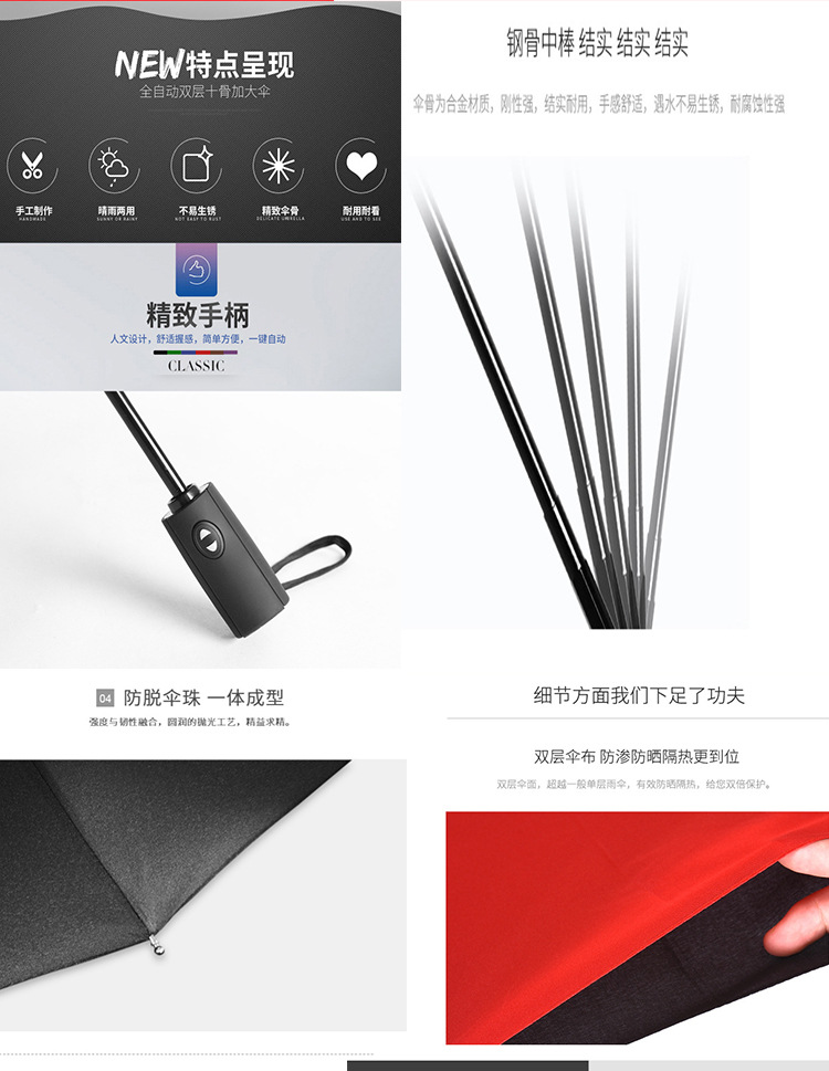 10 골 자동 대형 사업 광고 우산 써니 우산 검정 고무 선크림 3 개 접는 우산 선물 태양 우산 도매