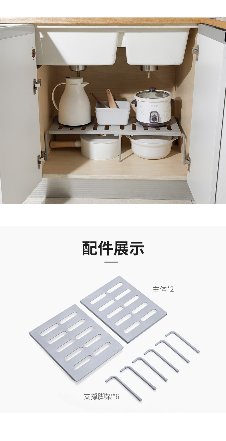 주방 레이어드 스토리지 랙 도매 플라스틱 공간 절약 펀치 프리 가전 제품 캐비닛 싱크대 스튜 냄비 보관 랙