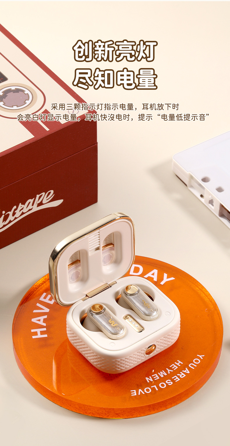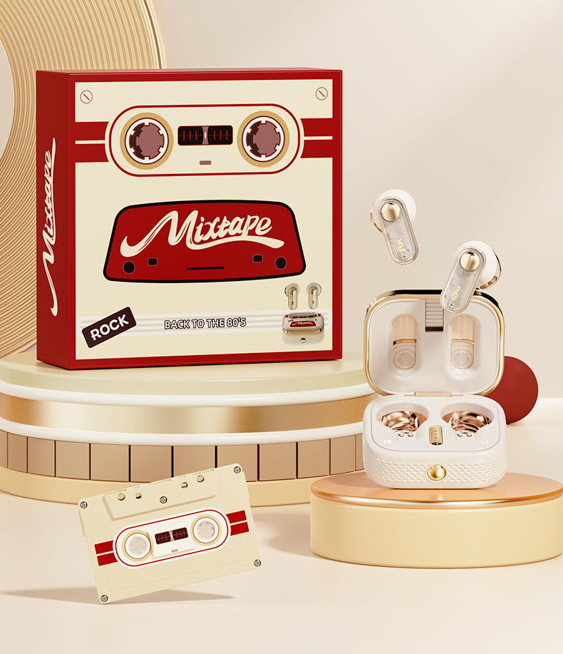 소스 제조업체 ROCK/ROCK 인 이어 무선 스테레오 스포츠 레트로 테이프 플레이어 TWS 블루투스 헤드셋