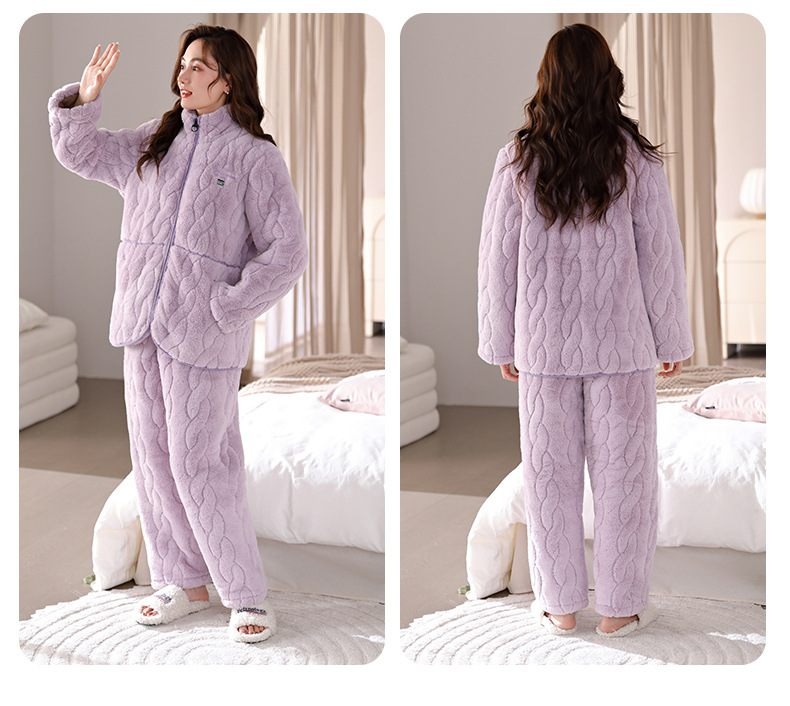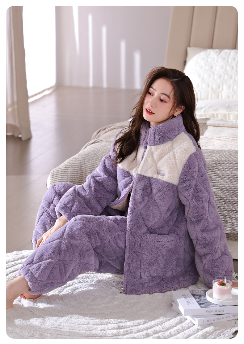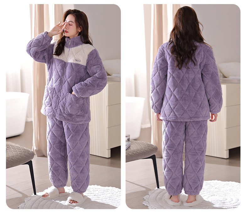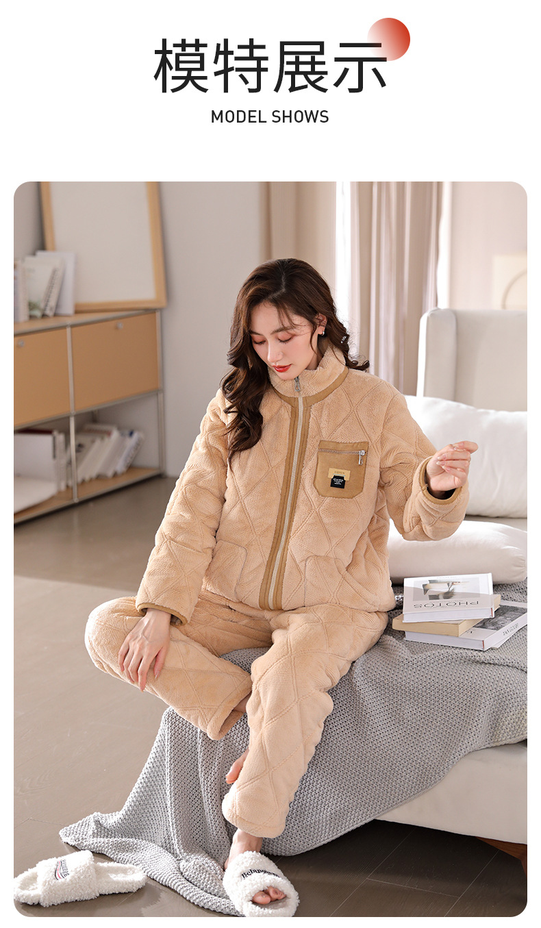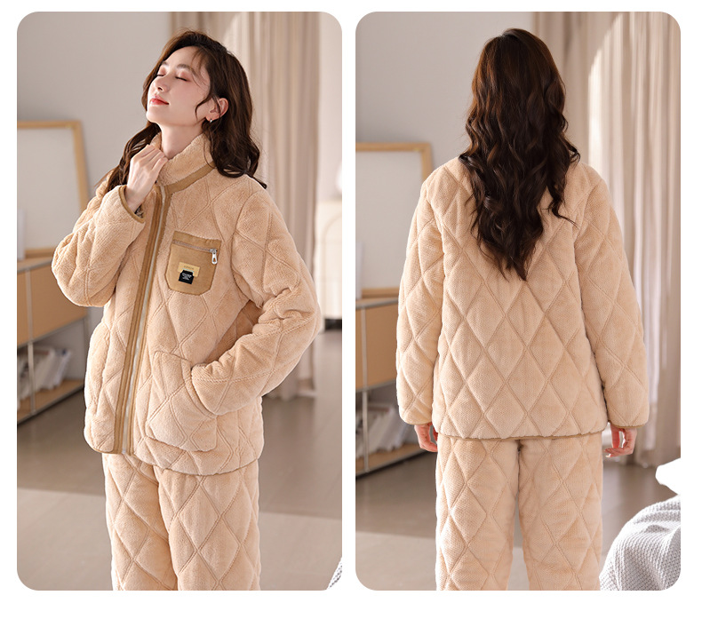 3 층 두꺼운 면 패딩 재킷 잠옷 여자의 겨울 산호 양털 2023 새로운 기모 플란넬 가정 의류 세트스토어 가기