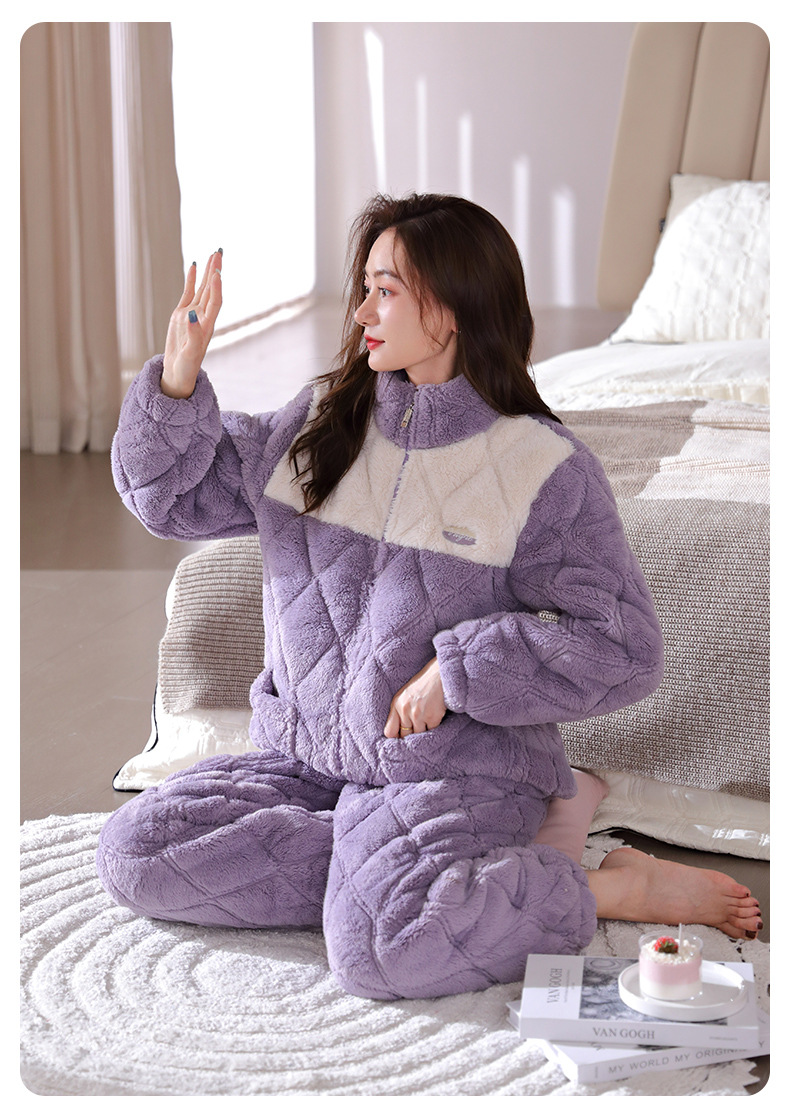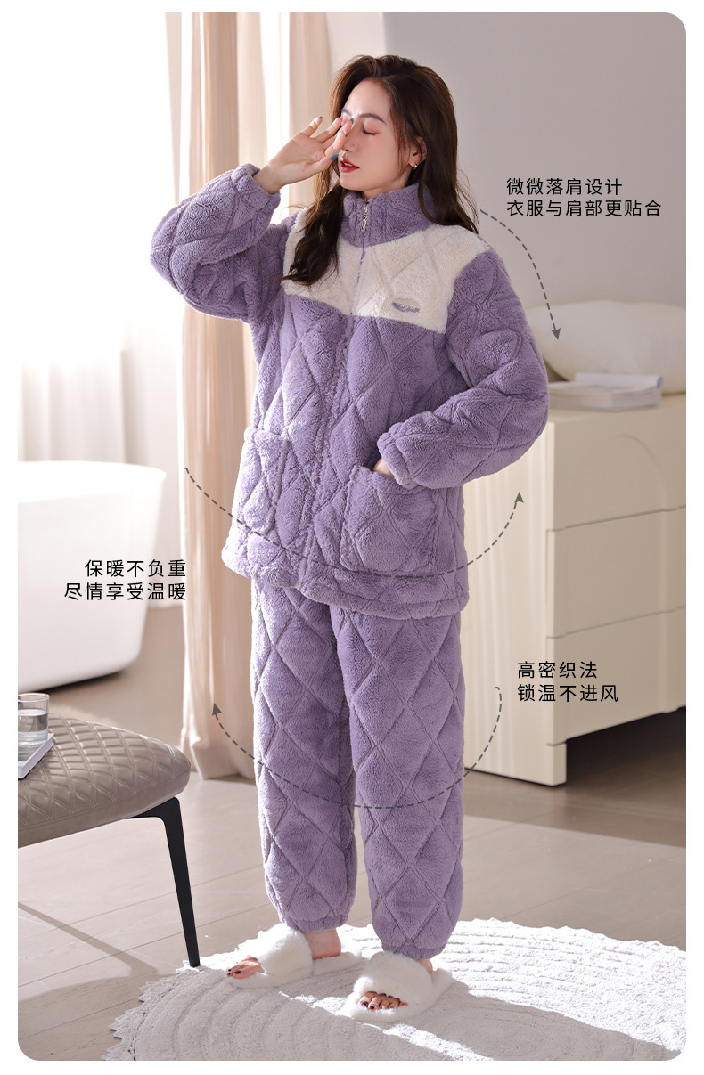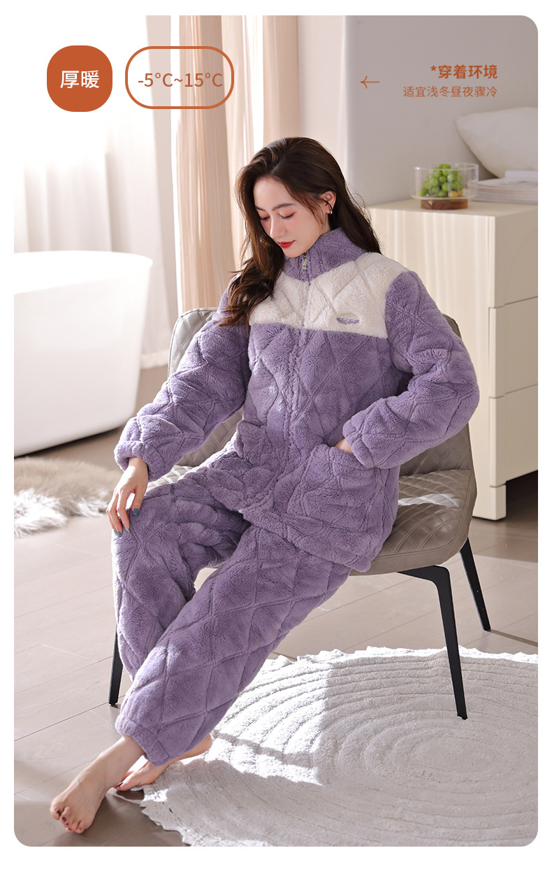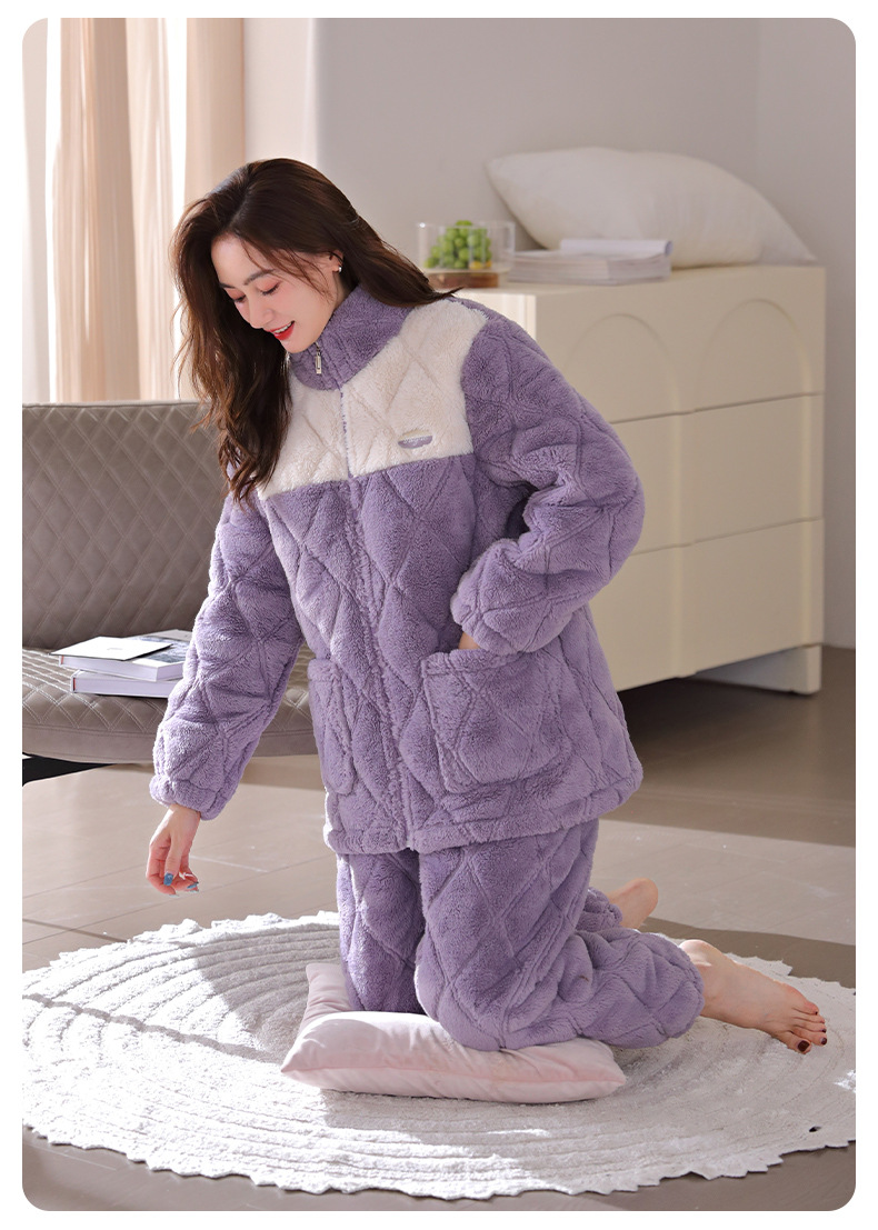 3 층 두꺼운 면 패딩 재킷 잠옷 여자의 겨울 산호 양털 2023 새로운 기모 플란넬 가정 의류 세트스토어 가기