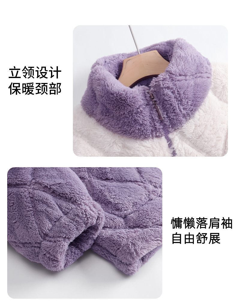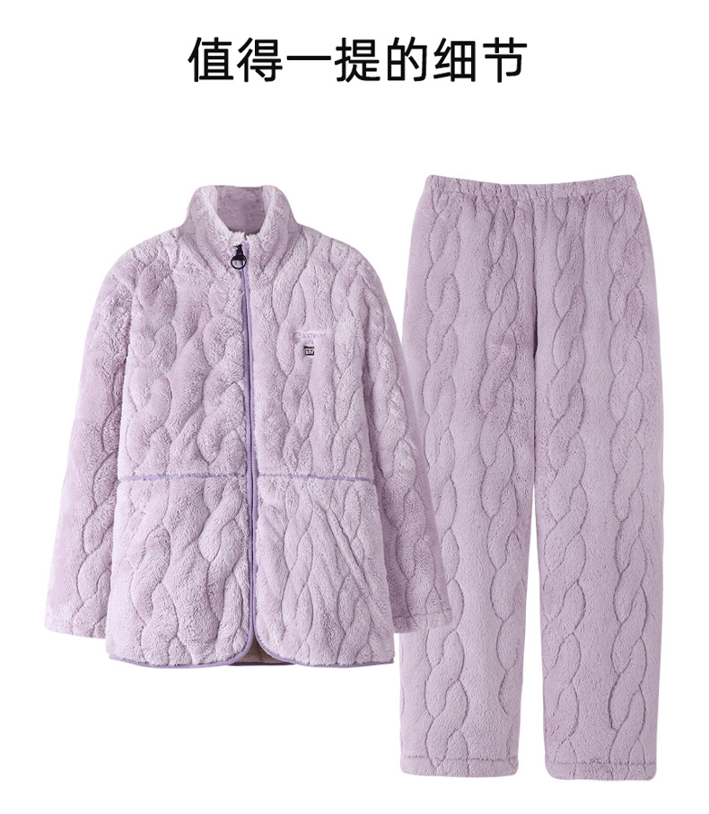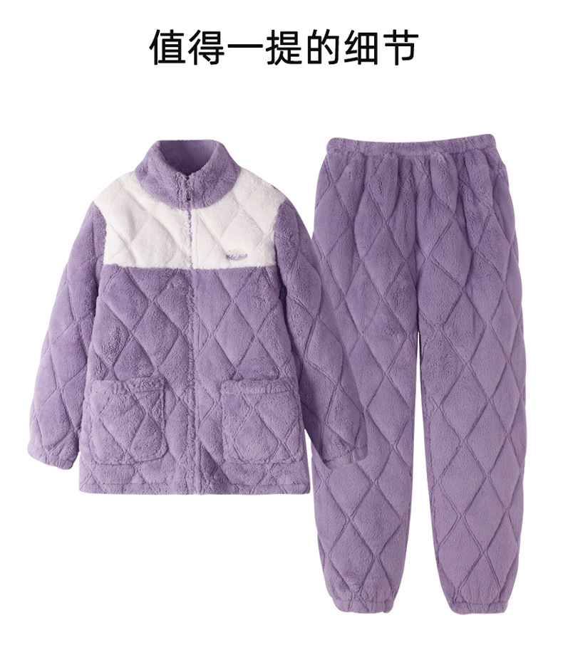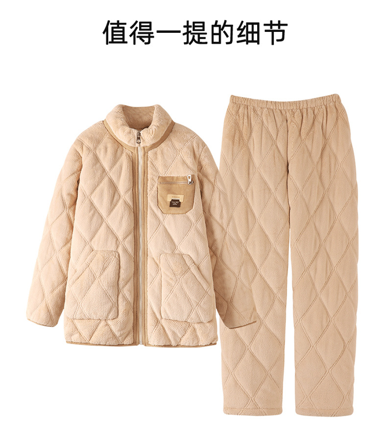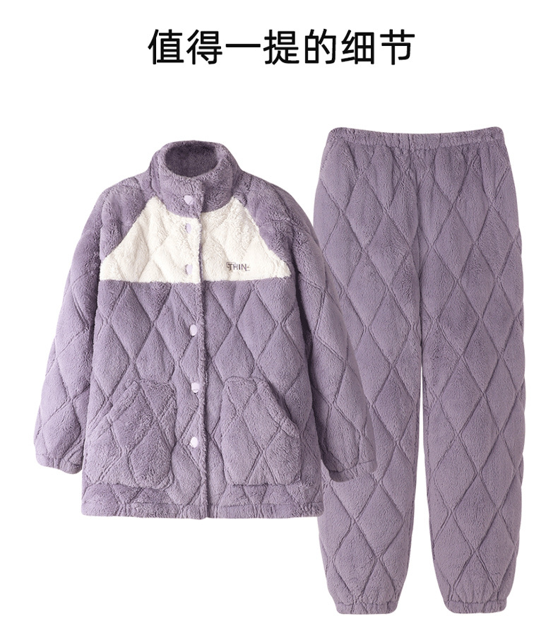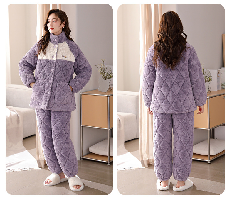 3 층 두꺼운 면 패딩 재킷 잠옷 여자의 겨울 산호 양털 2023 새로운 기모 플란넬 가정 의류 세트
