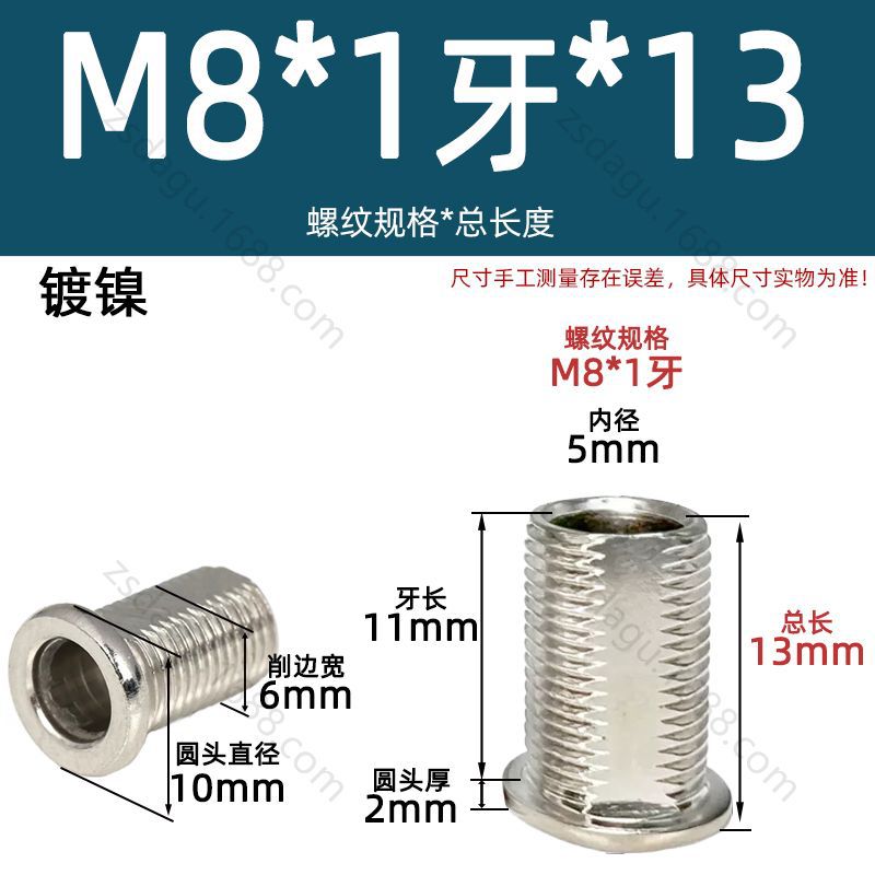 • 둥근 머리 T 자형 손질 된 미세 치아 튜브 M8 * 13 니켈 도금