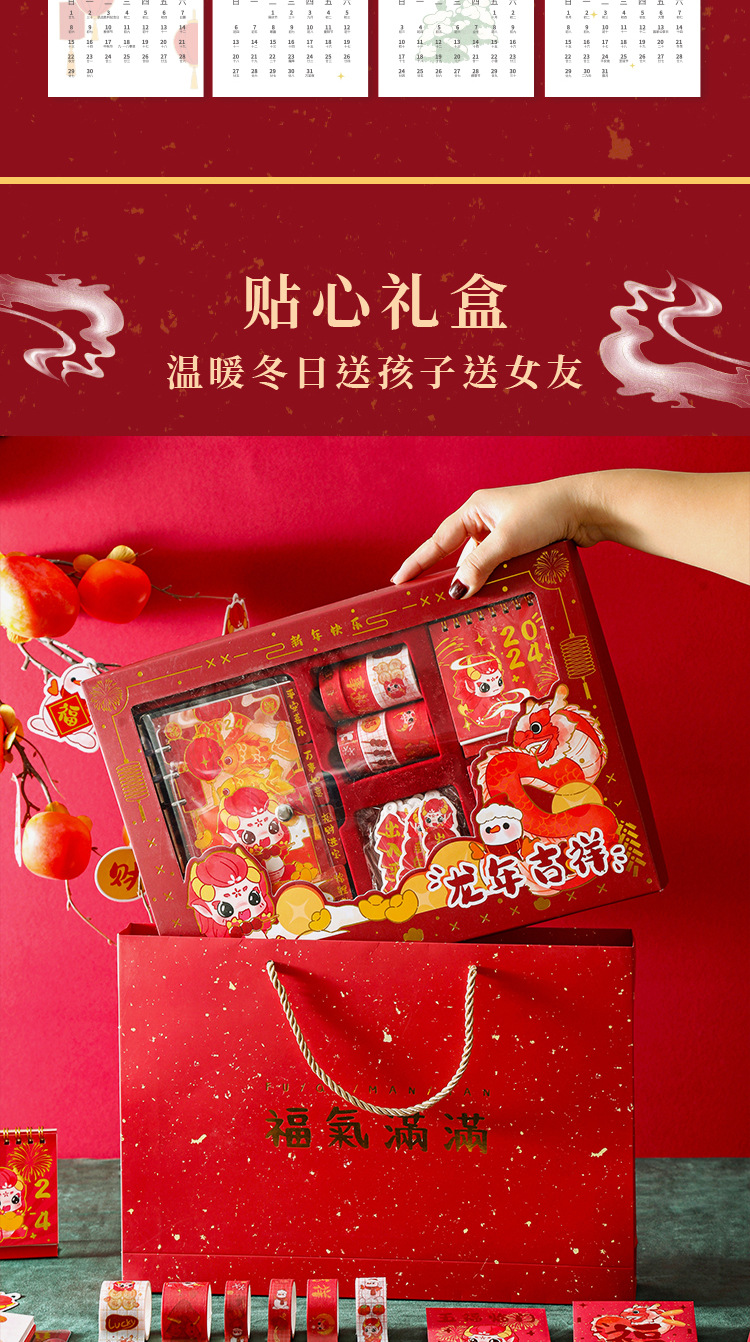 드래곤 신년 손 계정 선물 상자 2024 봄 축제 신년 상품 선물 상자 손 계정 책 세트 선물 세트 높은 외관 가치스토어 가기