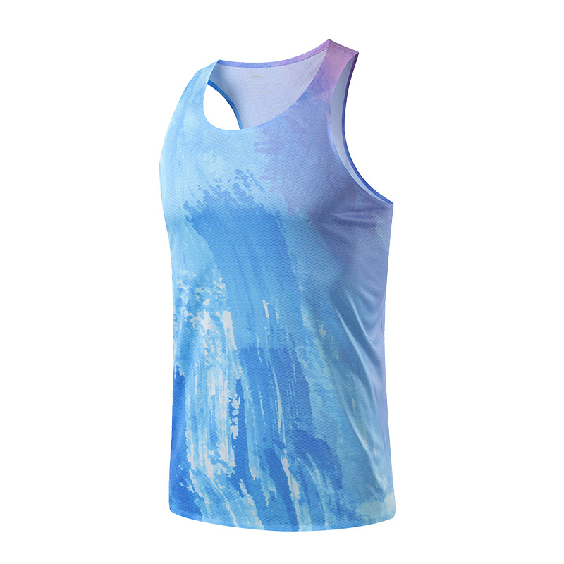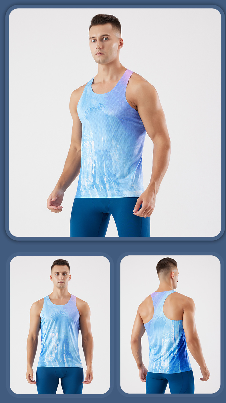 여름 남자 야외 스포츠 빠른 건조 조끼 민소매 양복 조끼 피트니스 트랙 및 필드 마라톤 경주 경량 훈련복