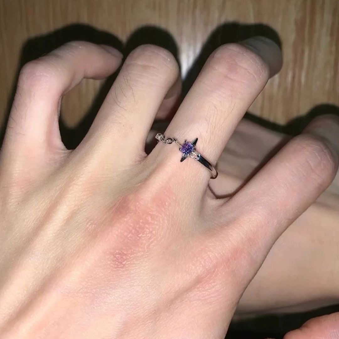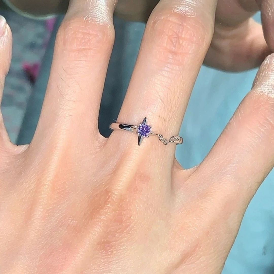 보라색 Xinghe 체인 오프닝 링 조정 가능한 4-Mang 스타 달콤한 고급 감각 여성을위한 심플한 우아한 반지스토어 가기