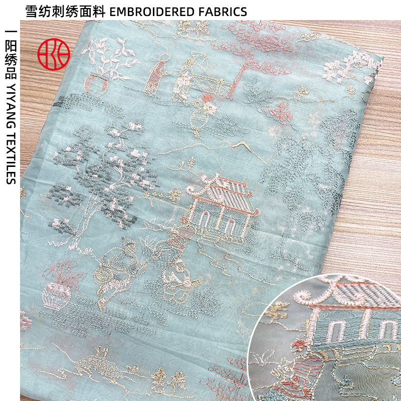 시폰 자수 직물 국가 스타일의 민족 스타일 소녀 원피스 한푸 치삼 수 놓은 모닝 가운 직물