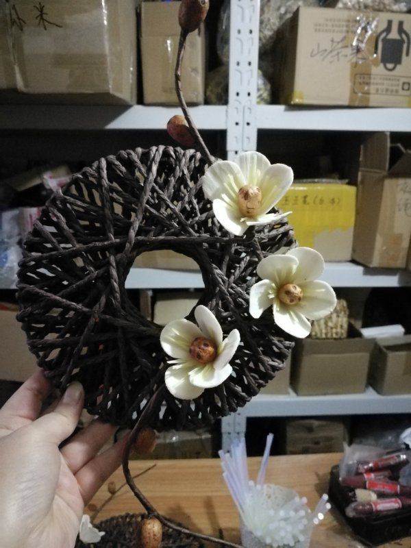 30cm 화이트 프리스비 중형 디스크 꽃꽂이 벽 장식 로프 직조 비행 접시 스튜디오 시뮬레이션 꽃 소프트 소품스토어 가기