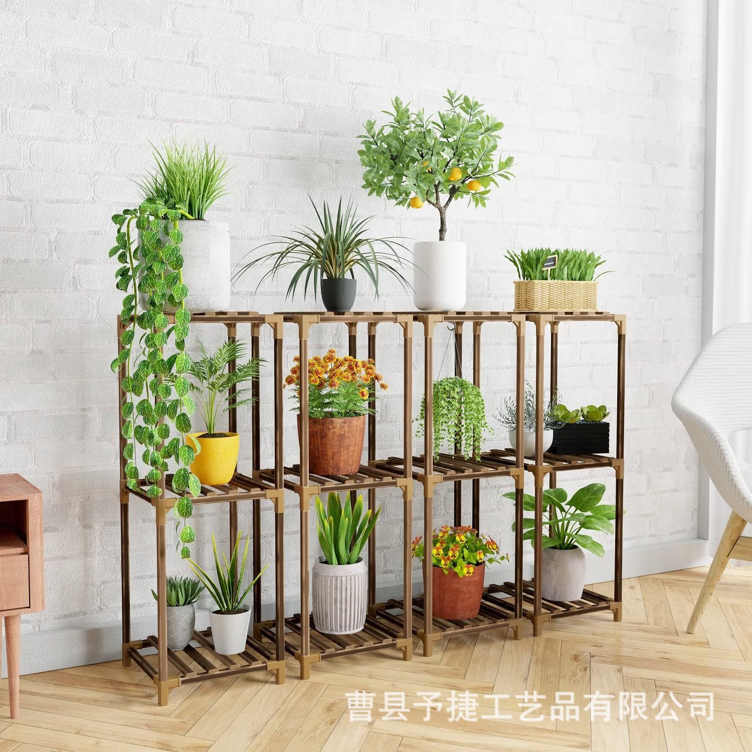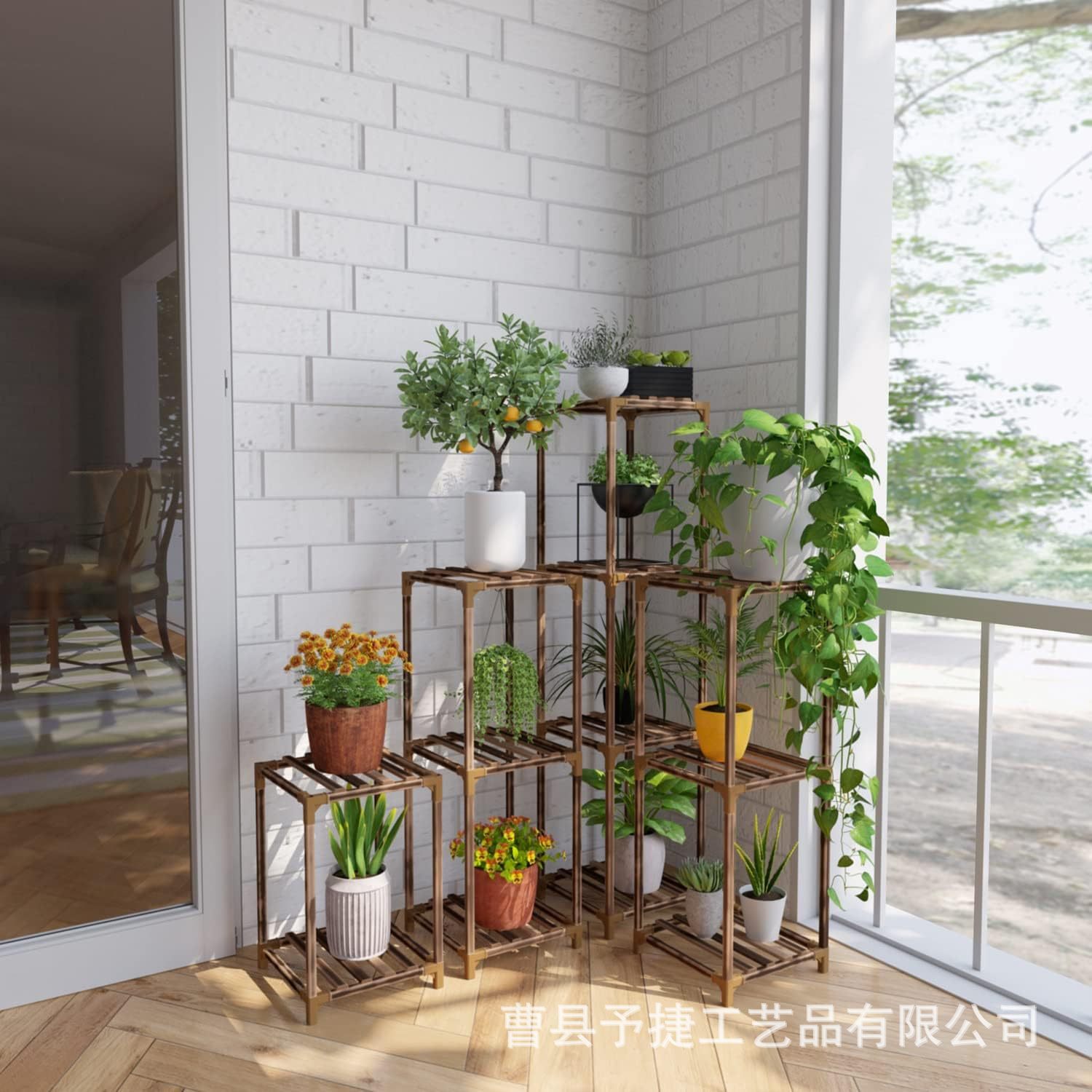 국경을 넘는 꽃꽂이대 아마존 가정용 수납 선반 나무 선반 실내 거실 식물 화분대 녹색 식물에 적합