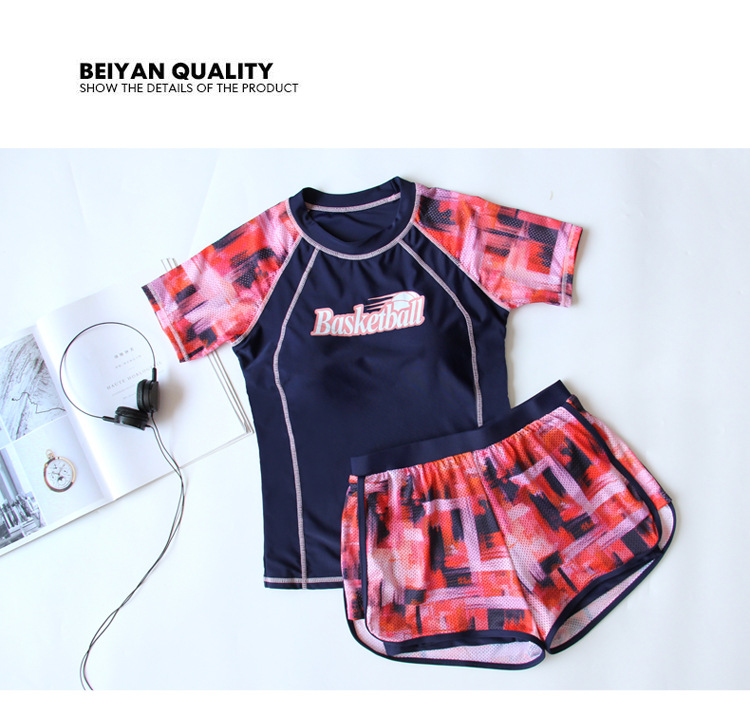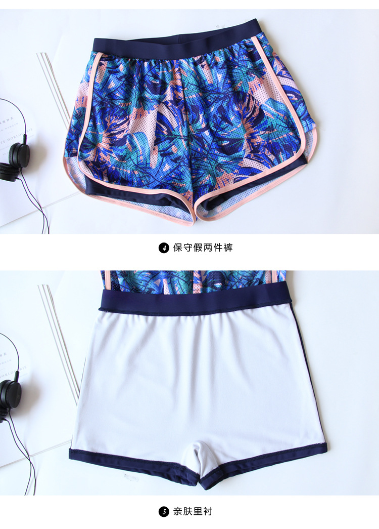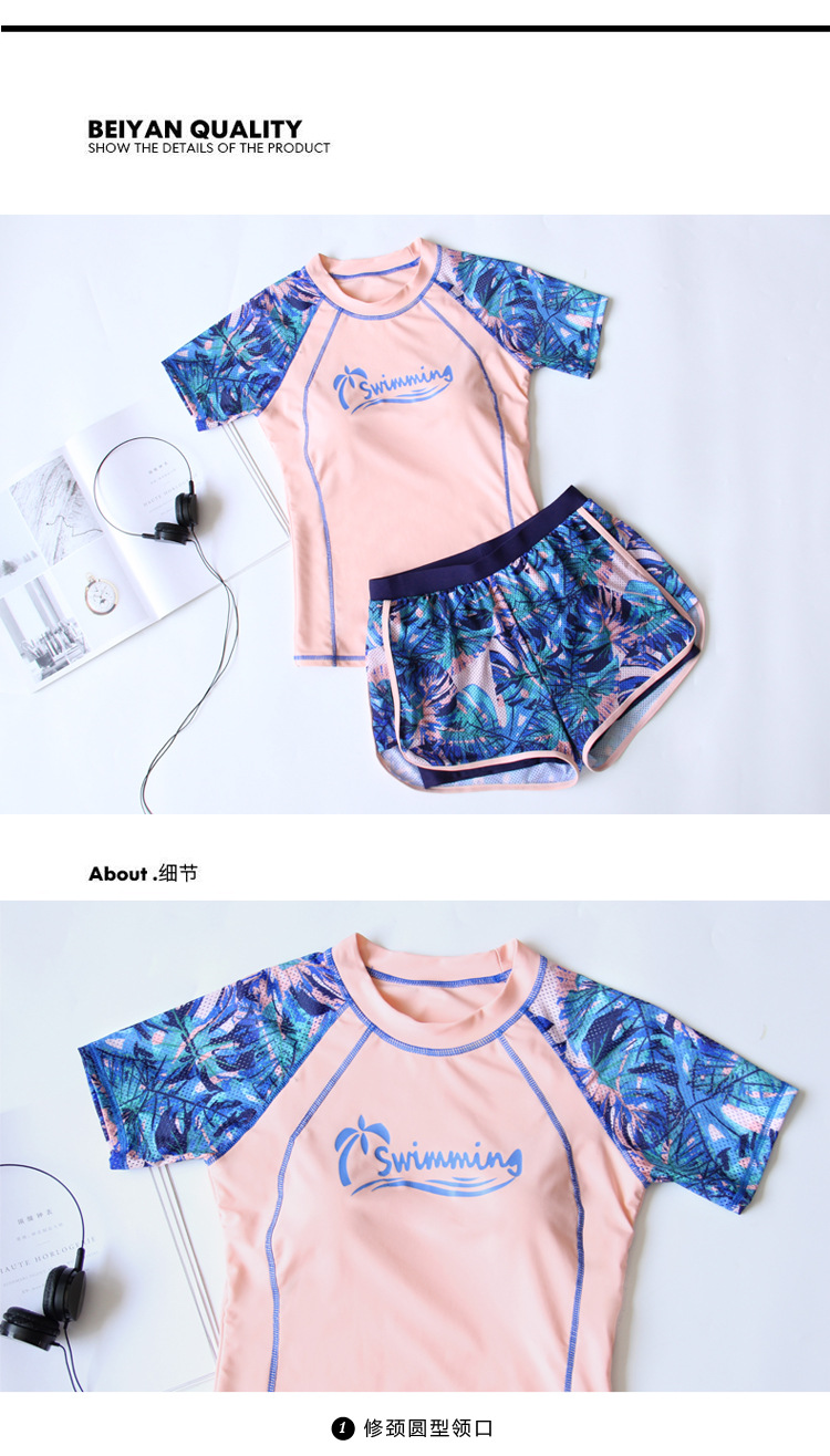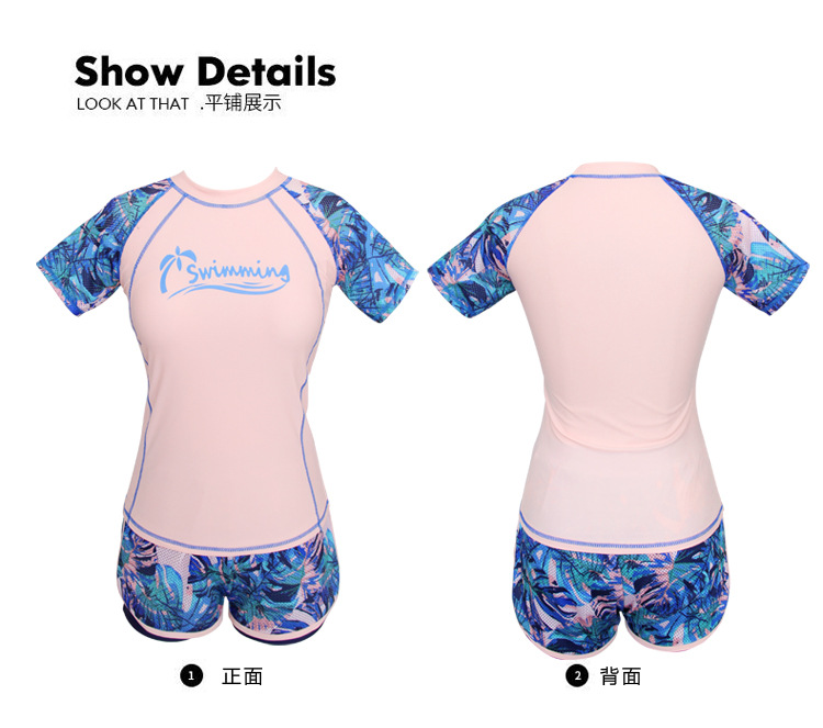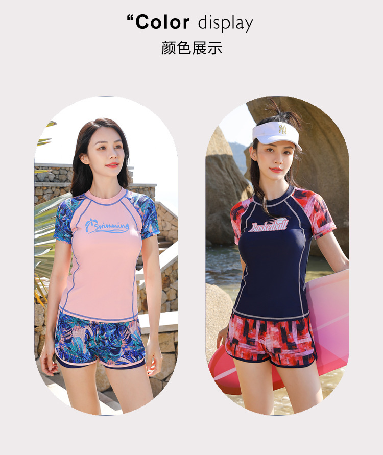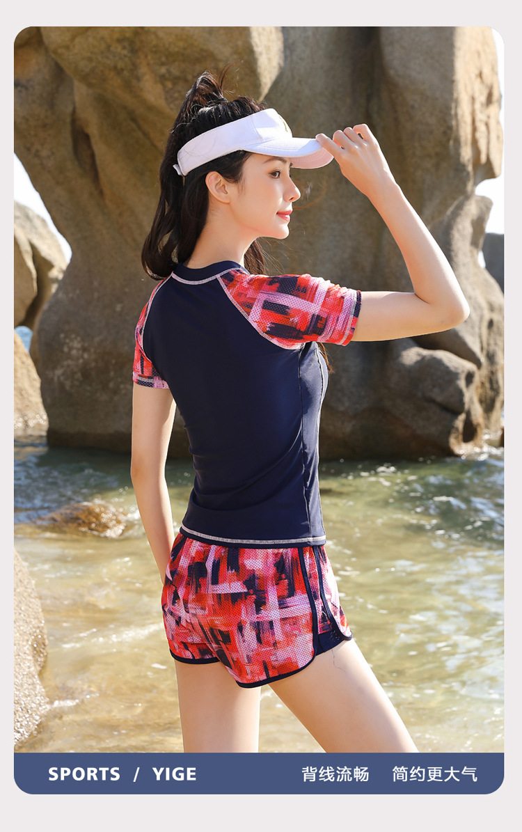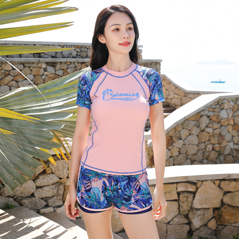 분할 보수 수영복 여성의 새로운 스타일 보수적 인 반팔 온천 패션 배꼽 덮음 슬리밍 훈련 스포츠 플랫 앵글 수영복