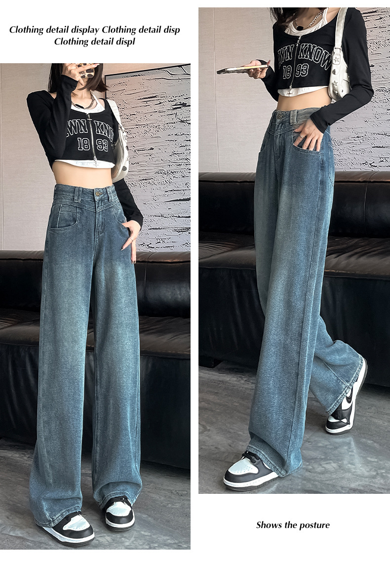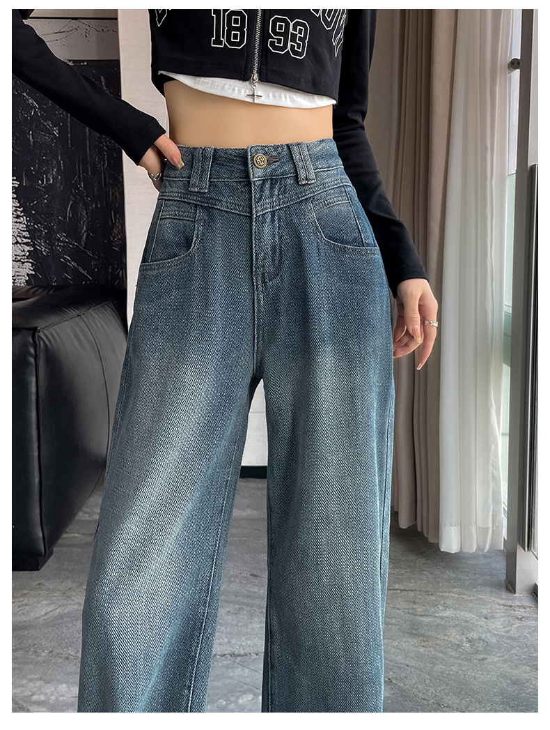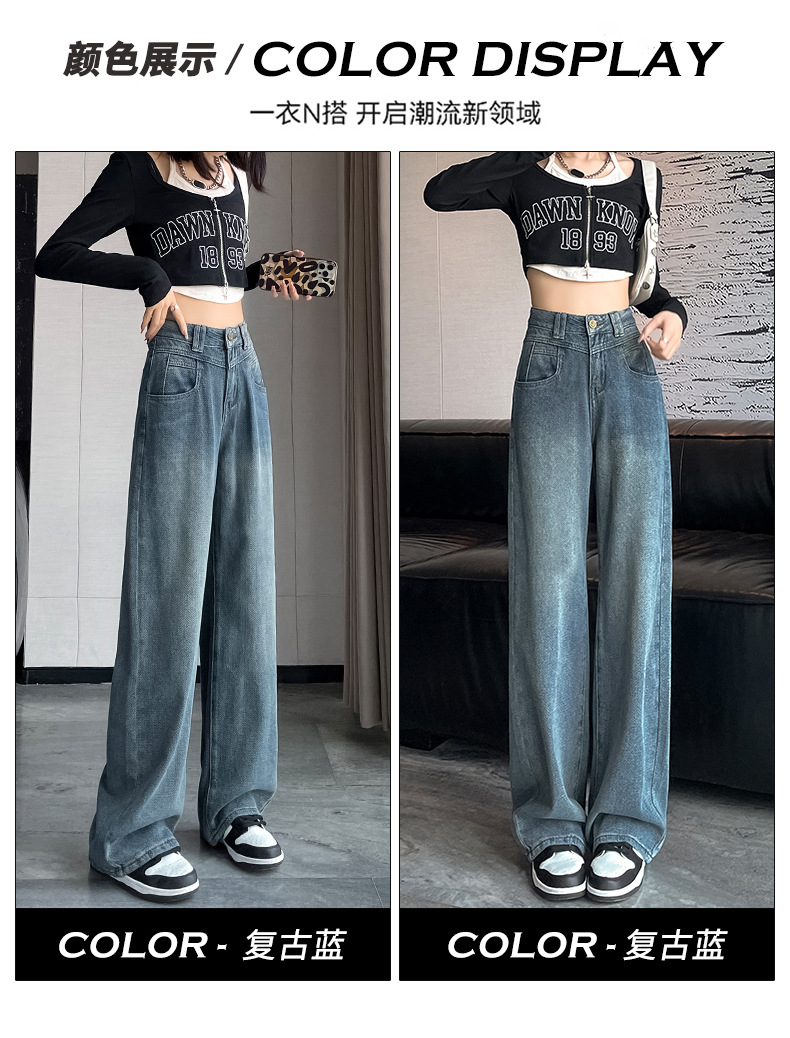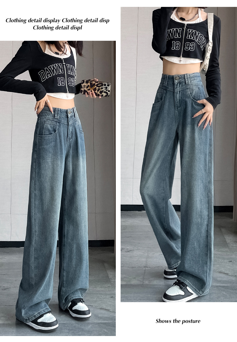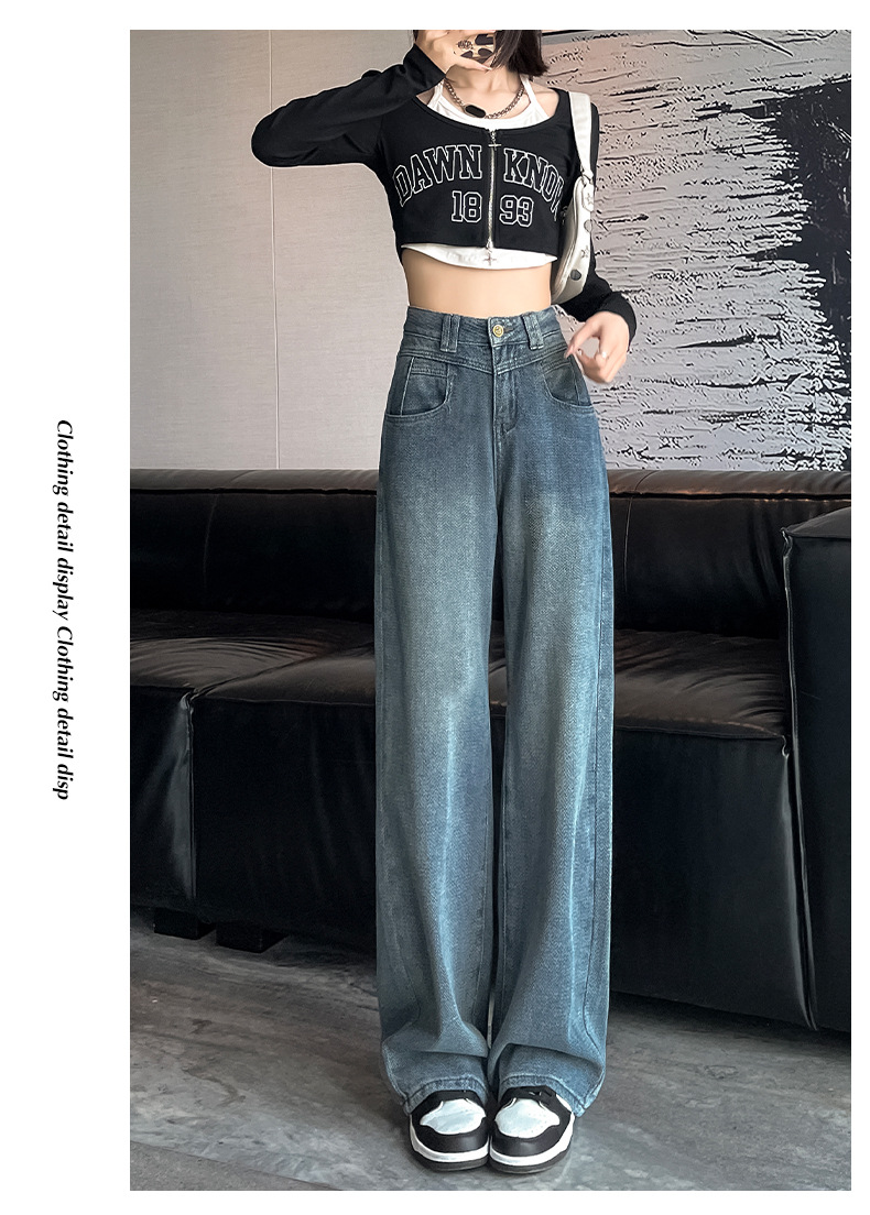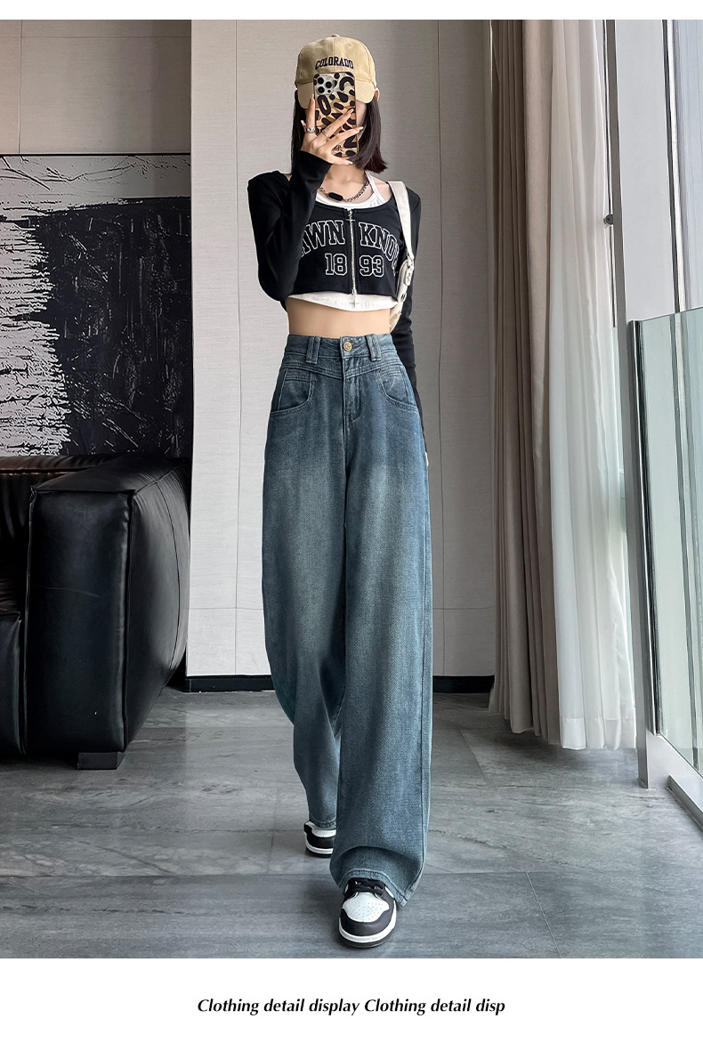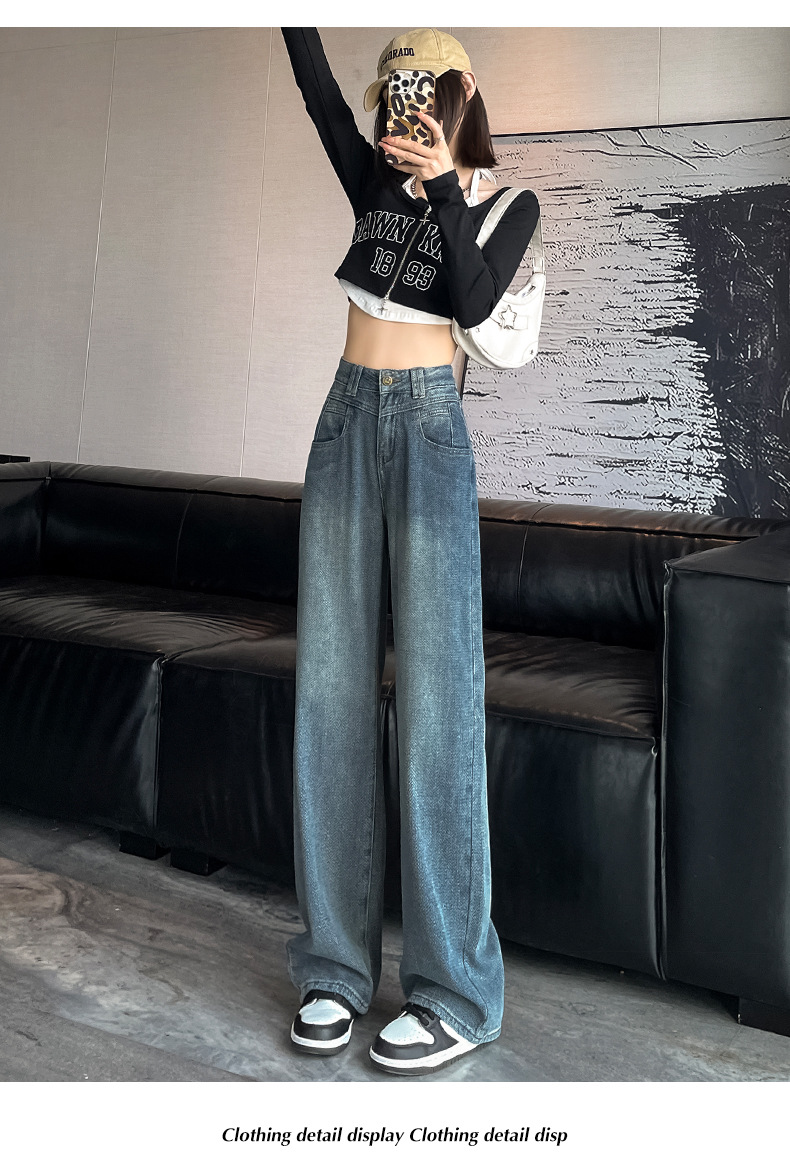하이 웨이스트 와이드 레그 청바지 여성 가을 2023 새로운 슬림 스타 패턴 작은 모든 종류의 스트레이트 팬츠스토어 가기
