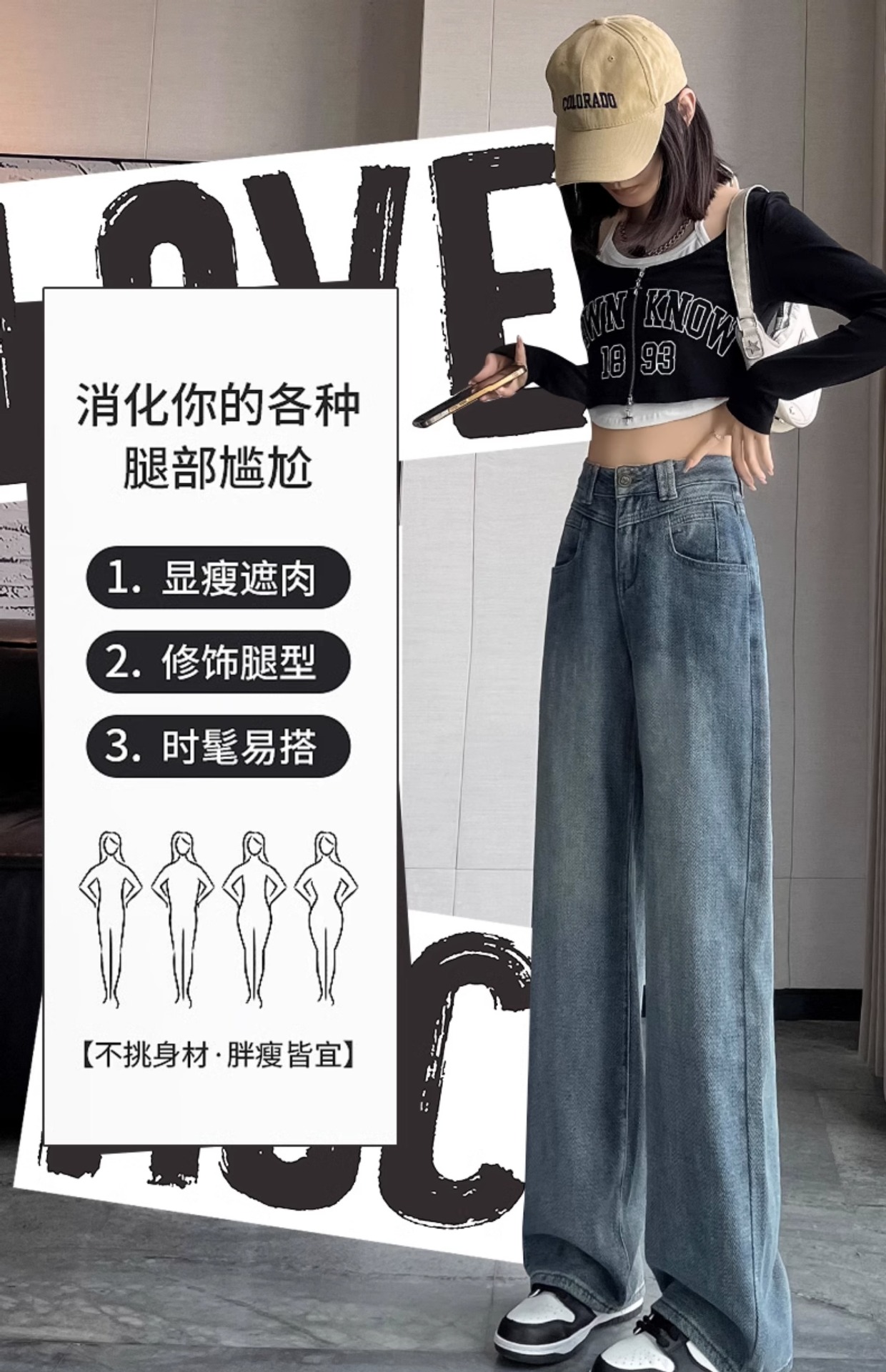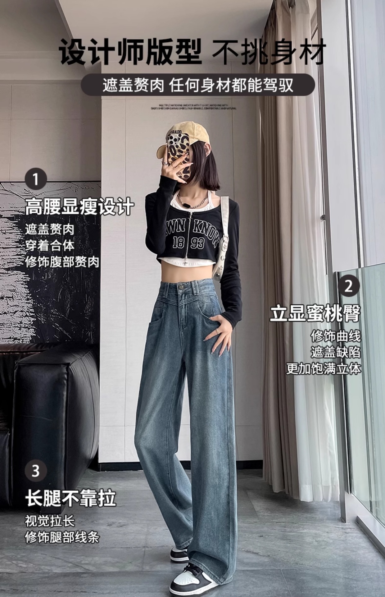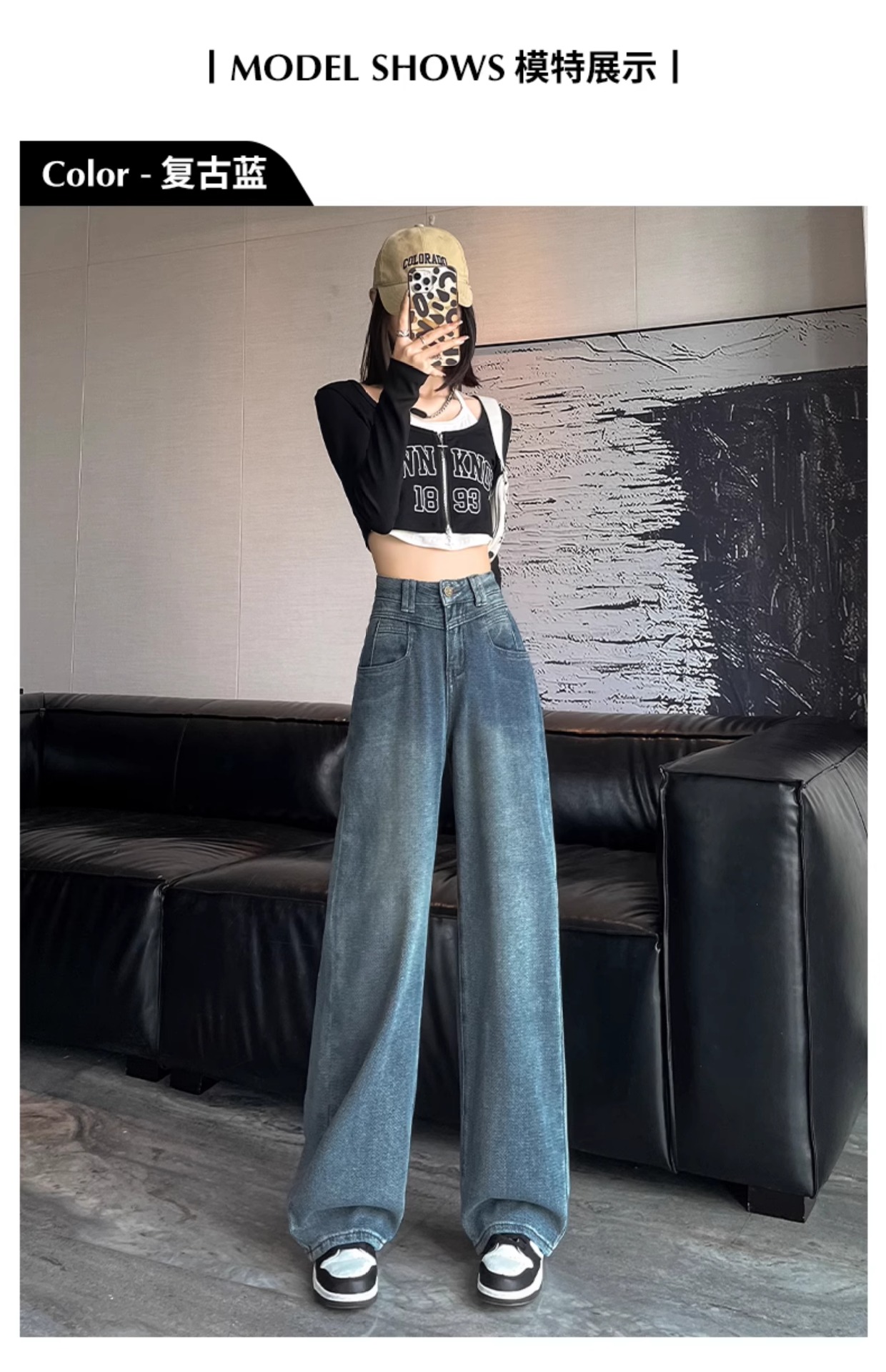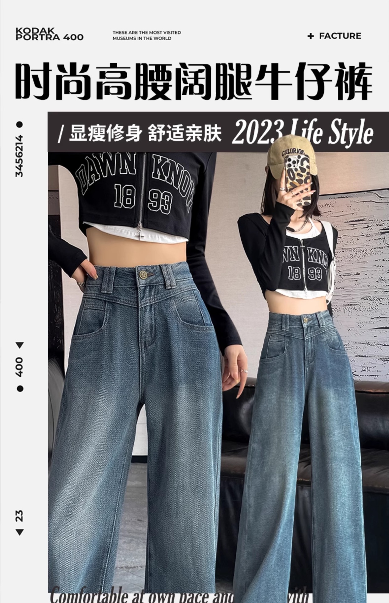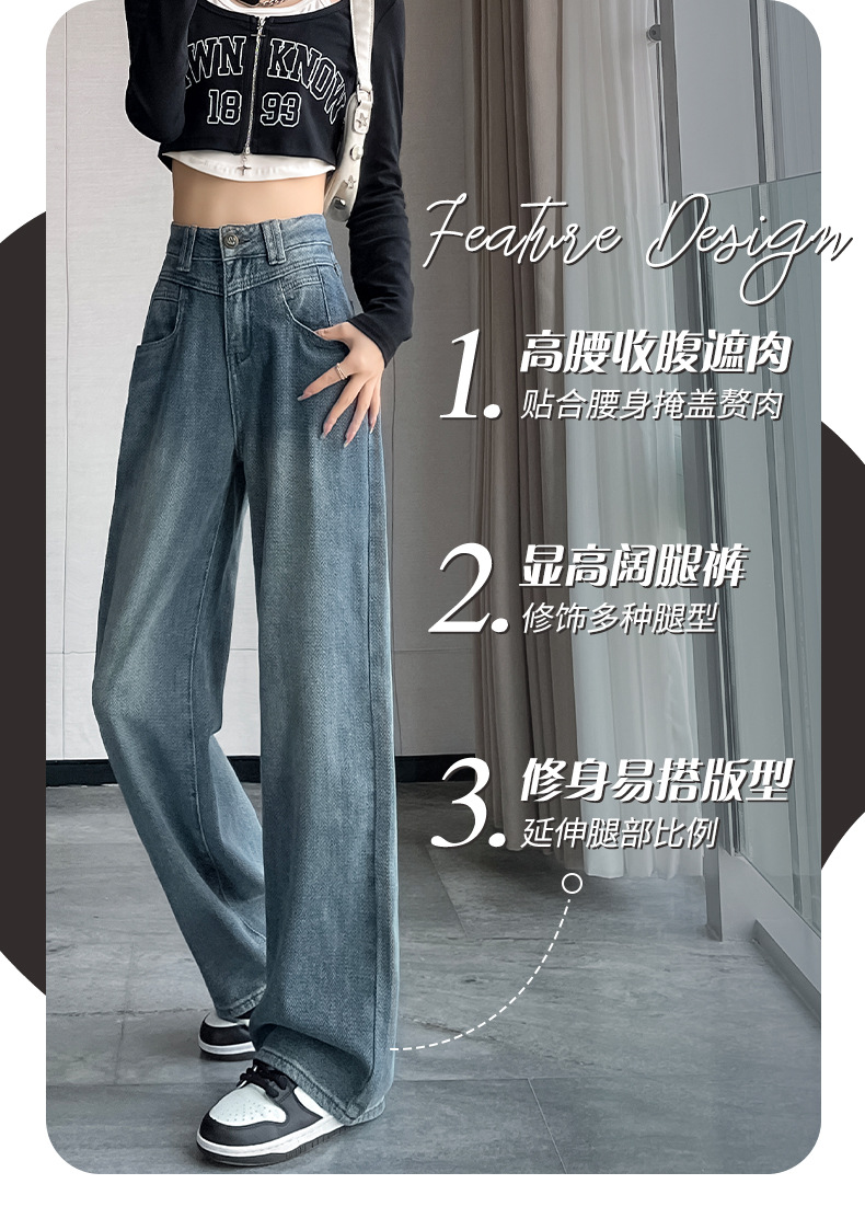 하이 웨이스트 와이드 레그 청바지 여성 가을 2023 새로운 슬림 스타 패턴 작은 모든 종류의 스트레이트 팬츠스토어 가기