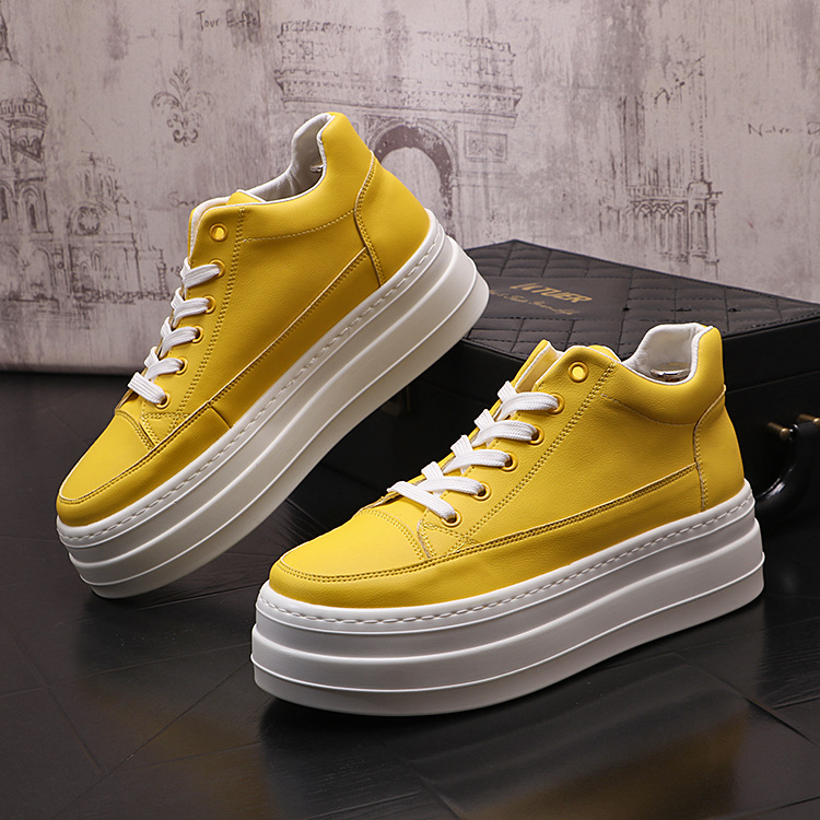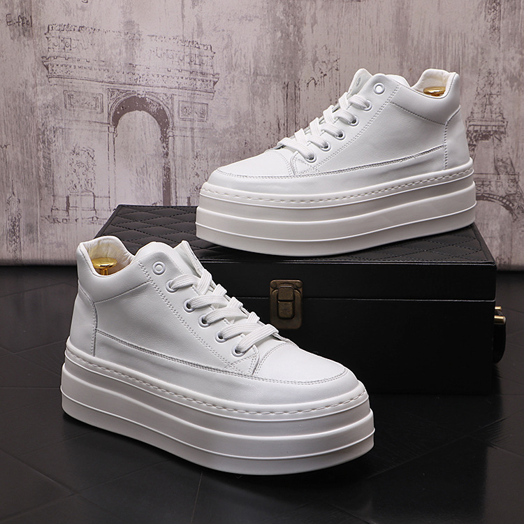 고층 화이트 슈즈 남성용 트렌디한 스니커즈 올매치 플랫폼 슈즈 한국식 라운드 토 편안한 캐주얼 키높이 남성 신발스토어 가기