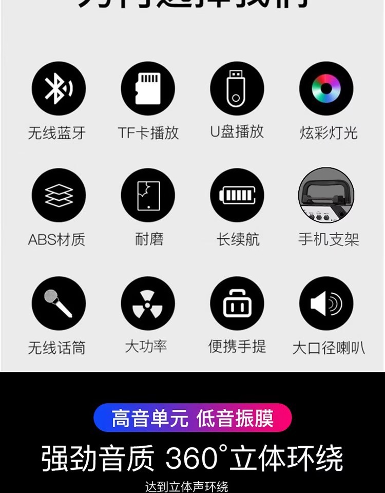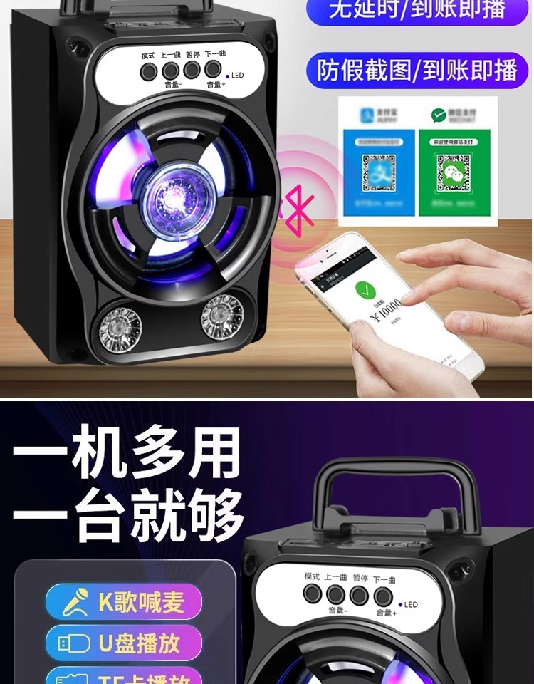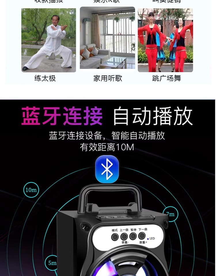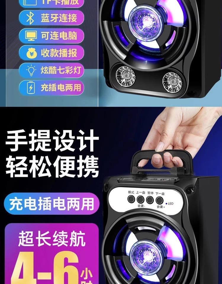 휴대용 휴대용 블루투스 스피커 야외 홈 카드 스퀘어 댄스 서브 우퍼 K-노래 큰 볼륨의 작은 사운드스토어 가기