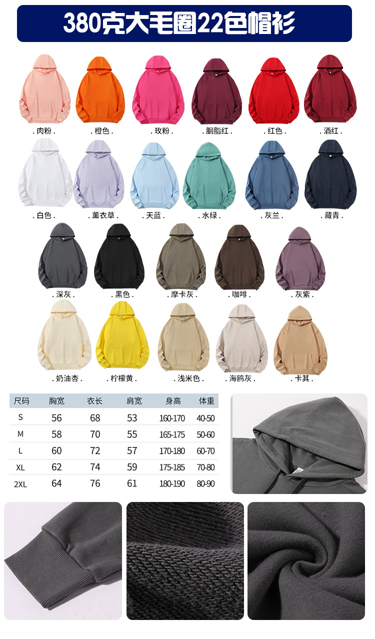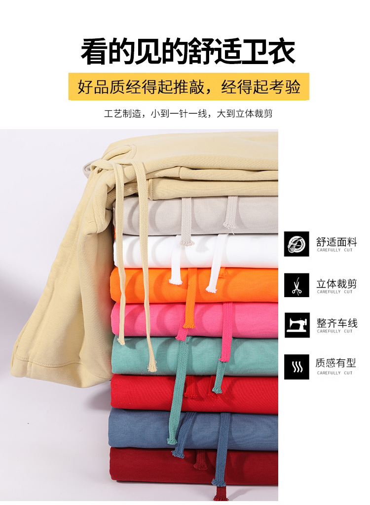 380g 헤비 후드 스웨터 단색 스웨터 느슨한 어깨 연인 남성 까마귀가있는 남성과 여성을위한 대형 테리스토어 가기