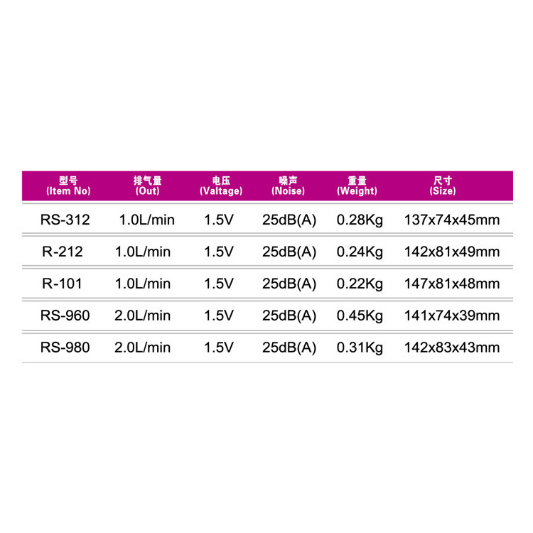 Risheng RS960/980/101/212/312 운반 테스트 산소 펌프 물고기 양식 낚시 음소거 건조 배터리 산소 공급 펌프