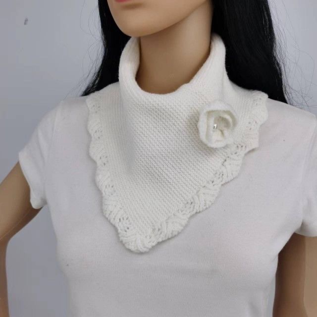 가을과 겨울 새로운 웨이브 가장자리 꽃 스카프 니트 스카프 자궁 경부 목 보호 거짓 칼라 면사 슬리브 크로 셰 뜨개질 삼각형 수건