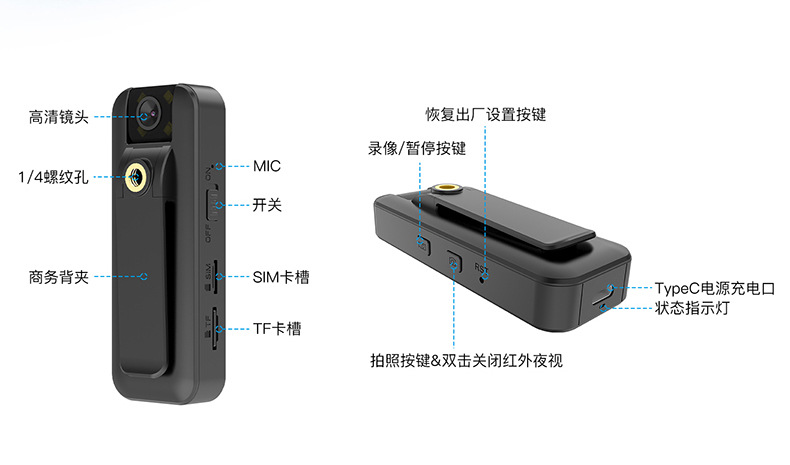 4G 법 집행 레코더 HD 원격 비디오 법 집행 기기 자동 적외선 야간 투시경 백 클립 야외 스포츠 카메라