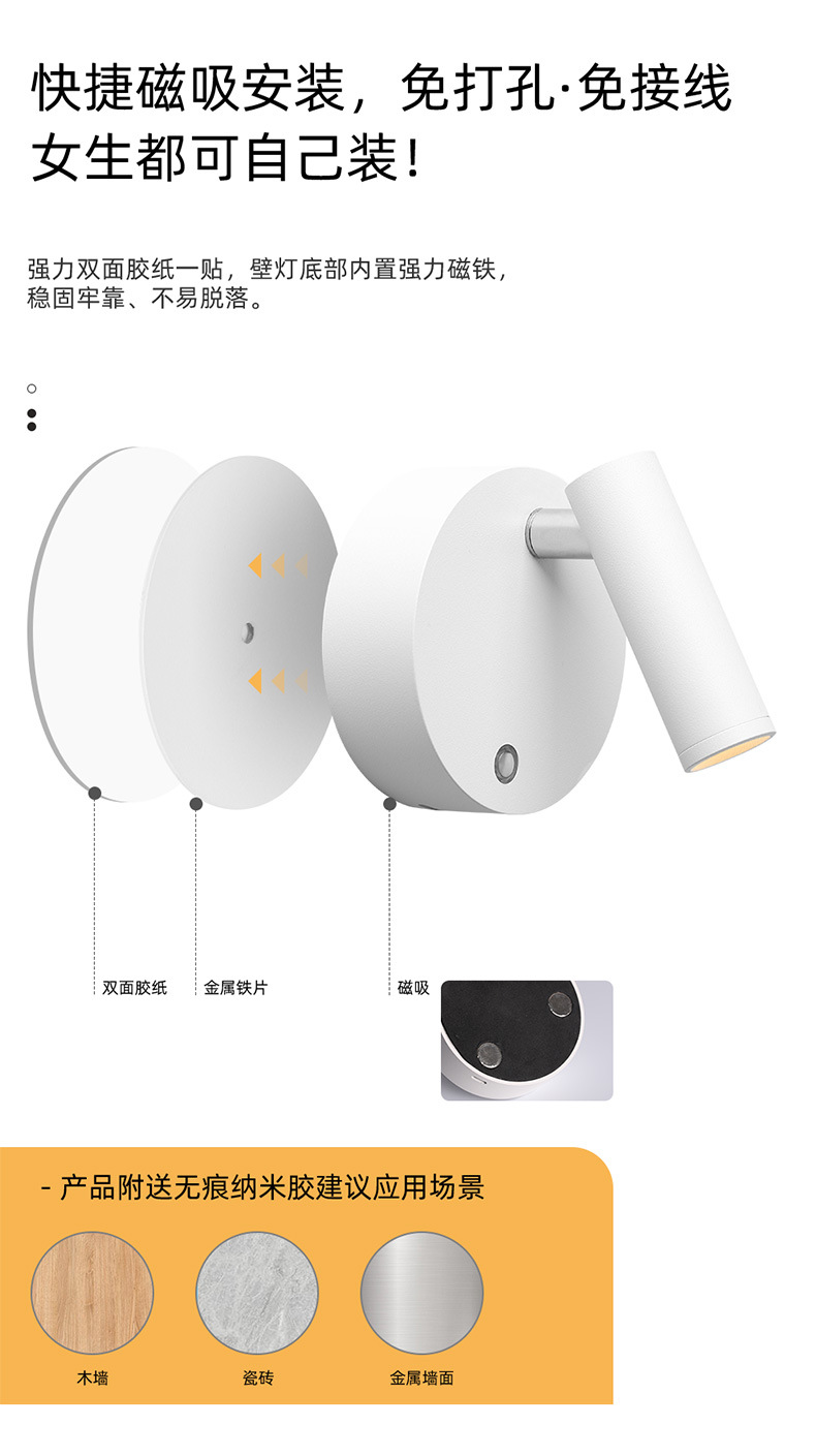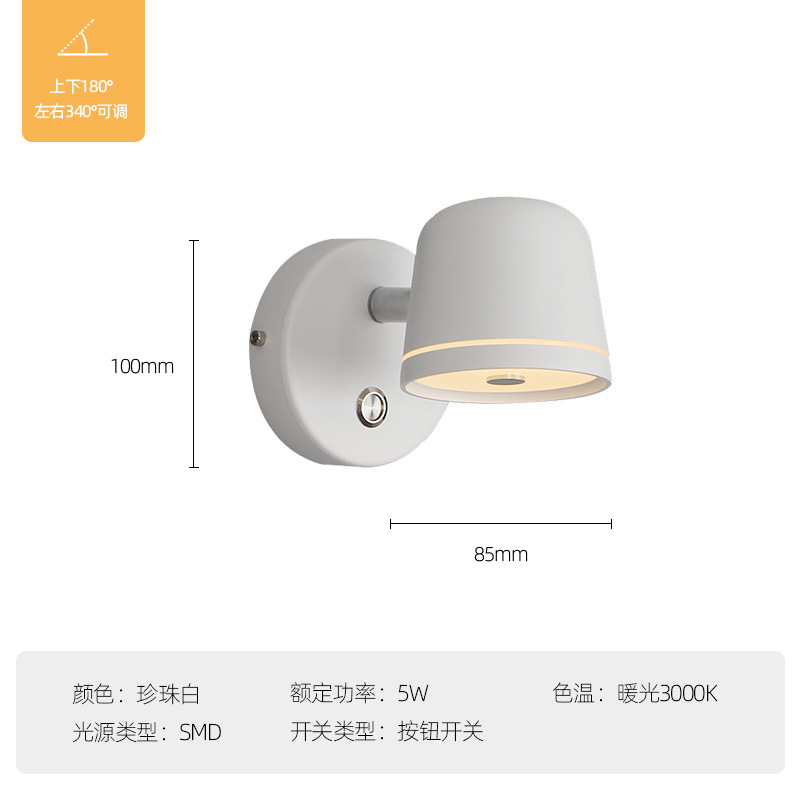 침실 벽등, 침대 옆 독서용 눈 보호등, 심플한 벽걸이형 벽등, 무단계 조광, 마스터 침실용 에너지 절약 조명기구스토어 가기