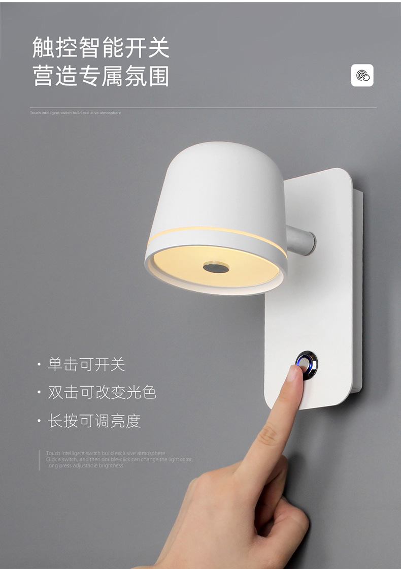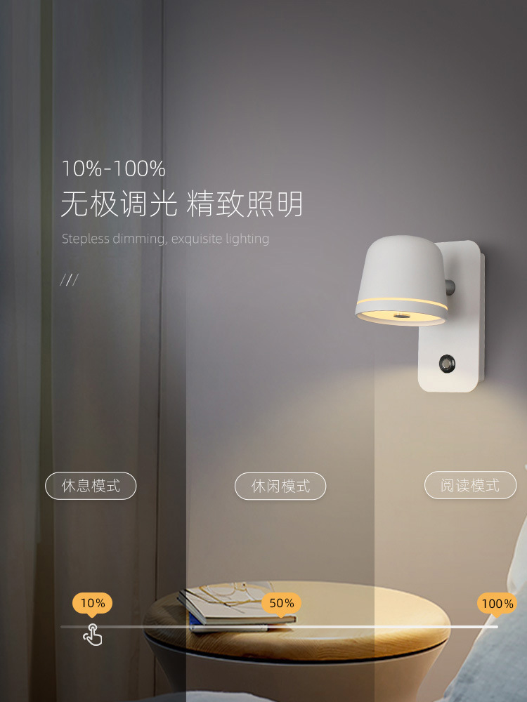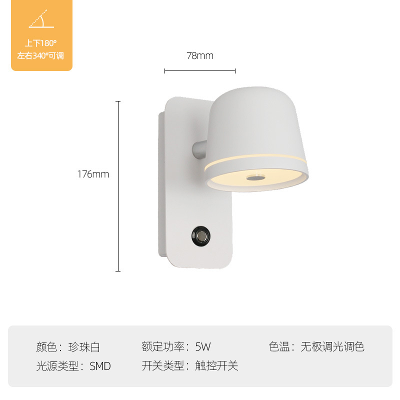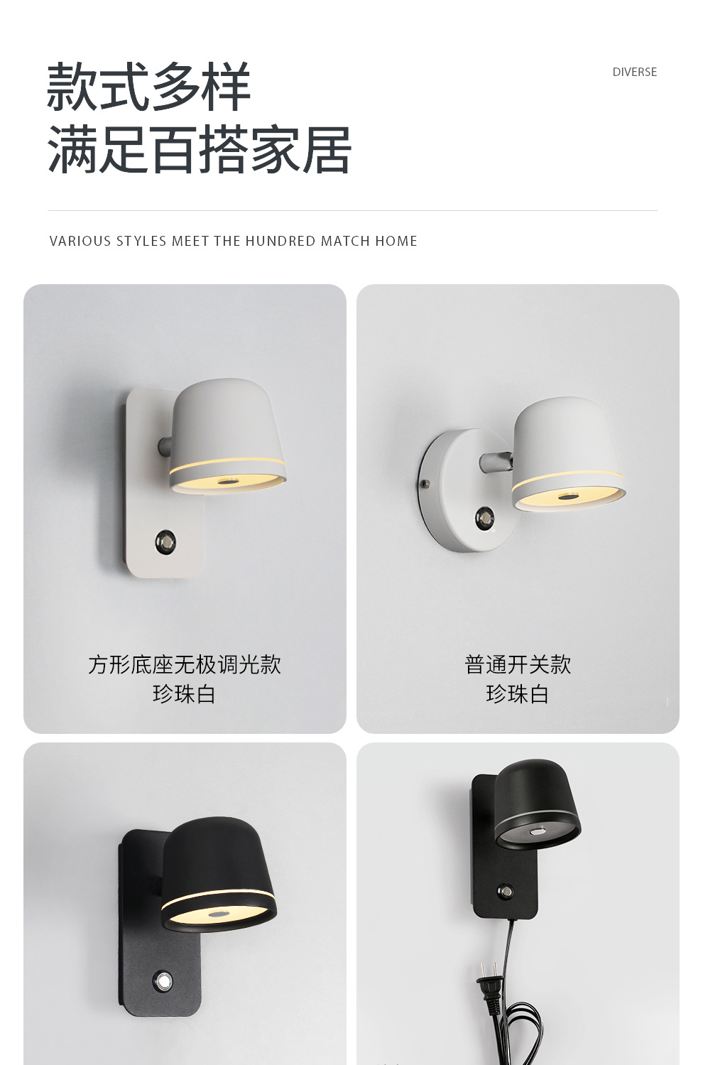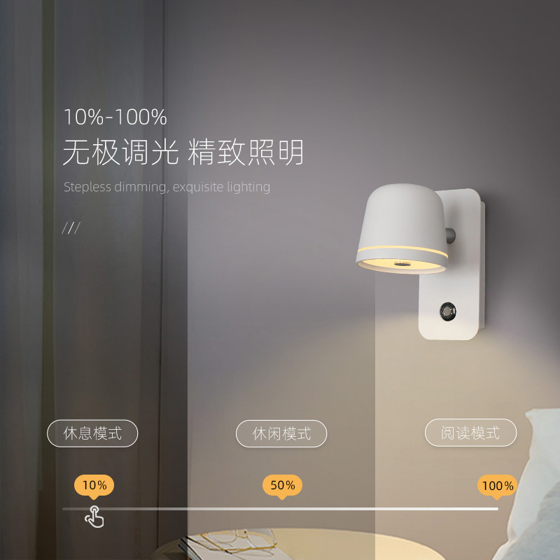 침실 벽등, 침대 옆 독서용 눈 보호등, 심플한 벽걸이형 벽등, 무단계 조광, 마스터 침실용 에너지 절약 조명기구