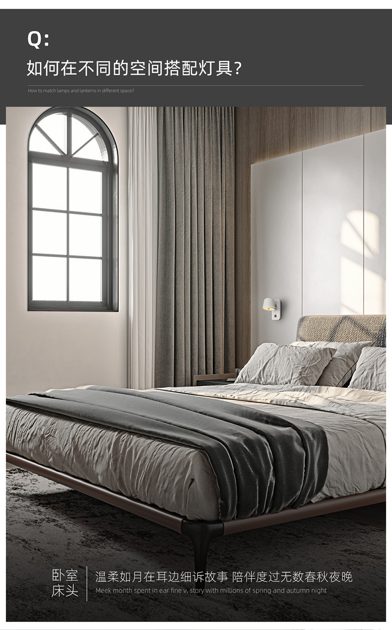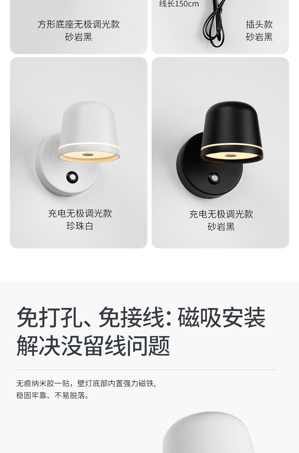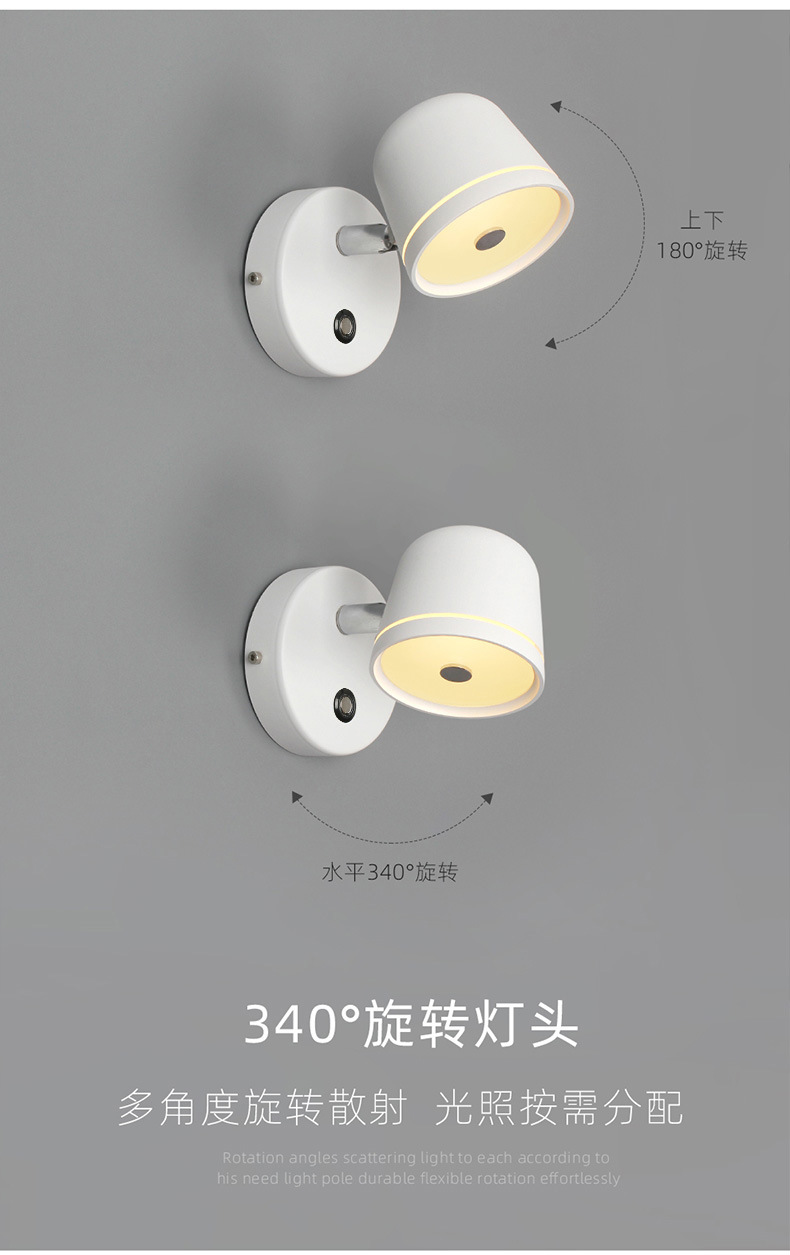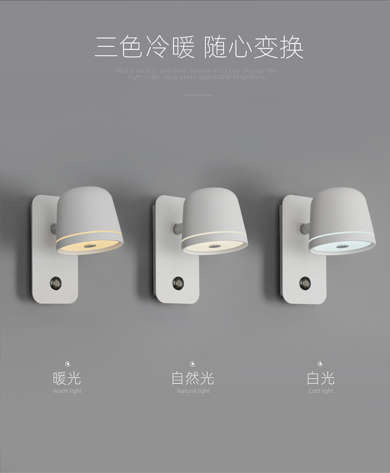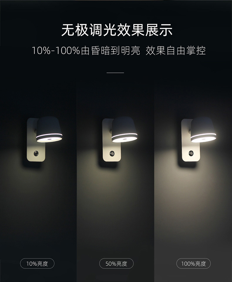 침실 벽등, 침대 옆 독서용 눈 보호등, 심플한 벽걸이형 벽등, 무단계 조광, 마스터 침실용 에너지 절약 조명기구