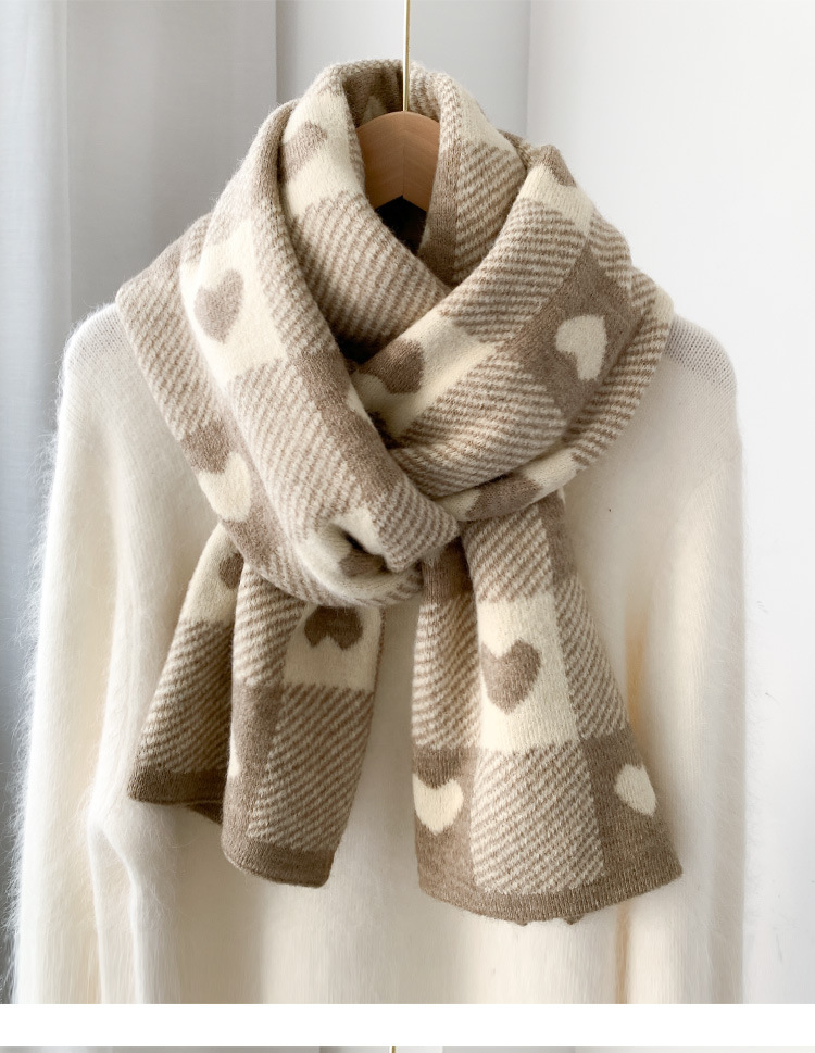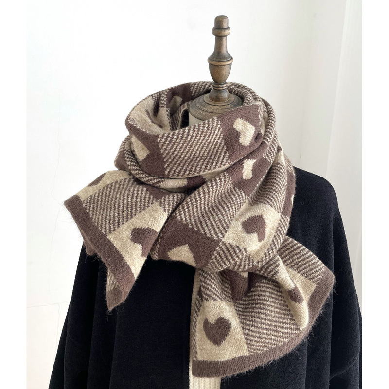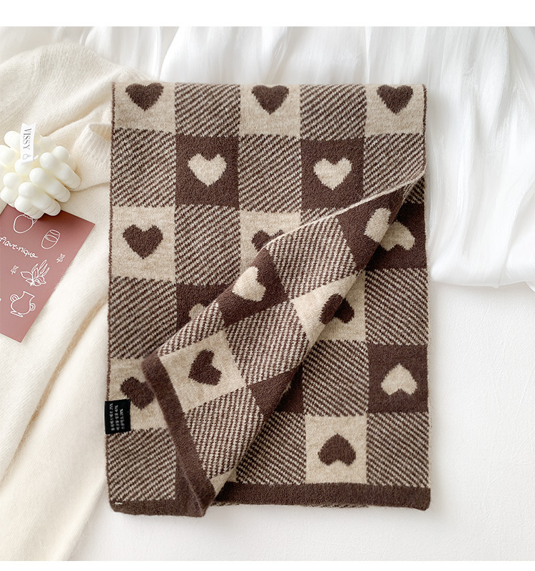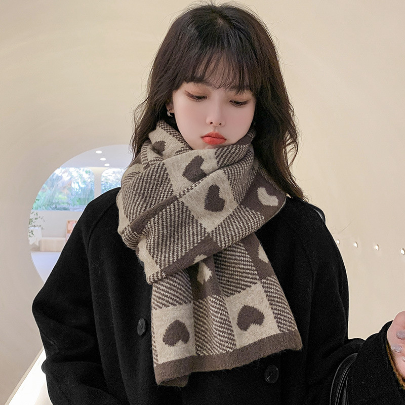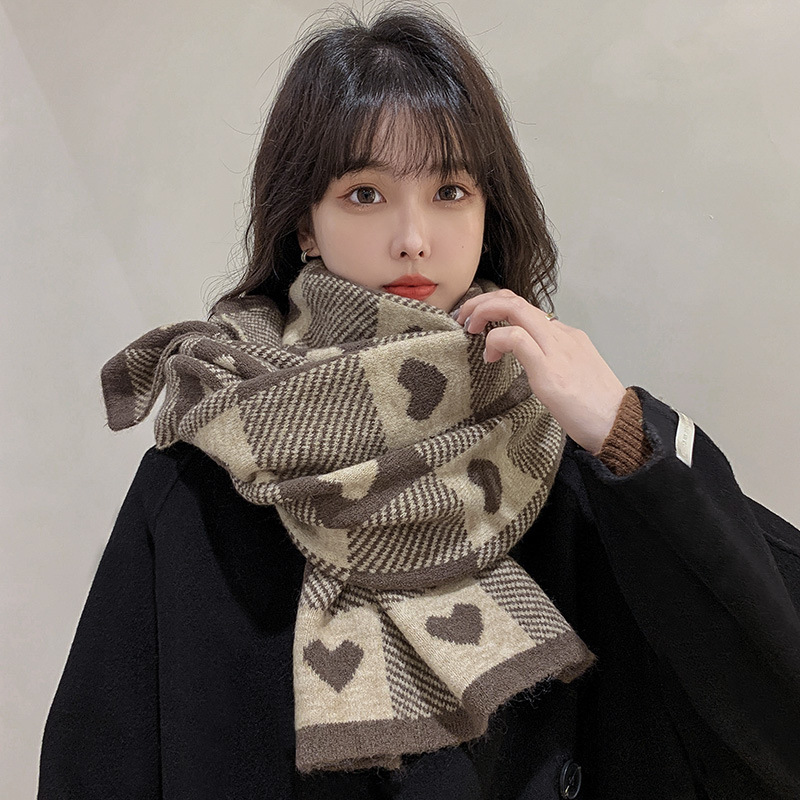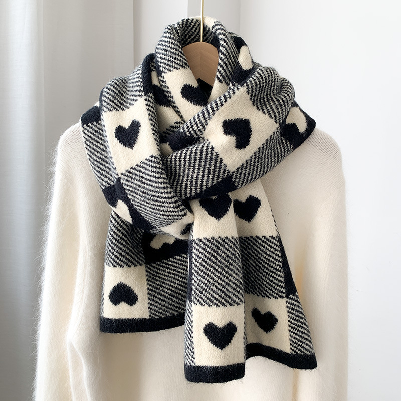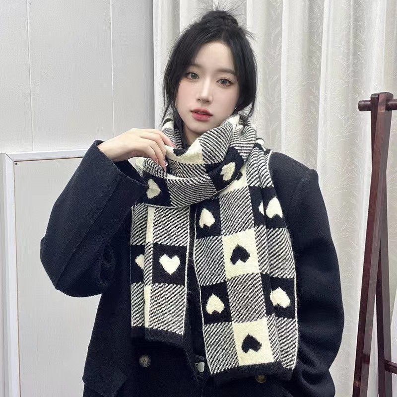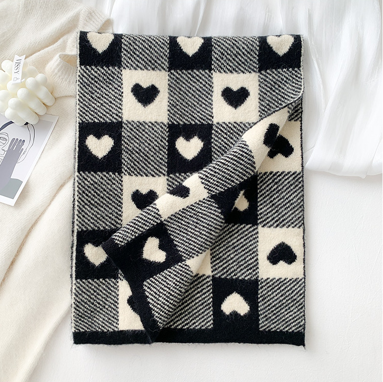 가을과 겨울 사랑 체스 판 스카프 여성의 한국 스타일 작은 버전 두꺼운 따뜻한 숄 학생의 모든 일치 니트 흑백 스카프