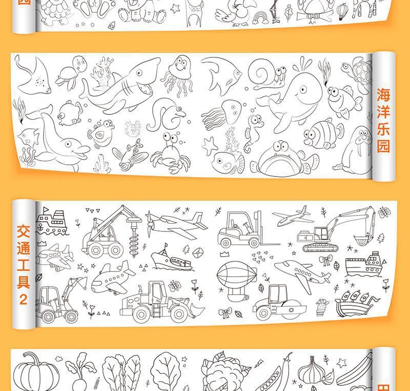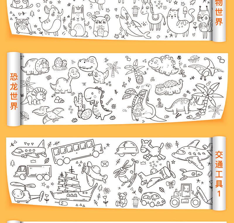 어린이 색칠 낙서 슈퍼 롱 그림 스크롤 유치원 아기 색칠 종이 손으로 그린 그림 그림 낙서 그림 스크롤 배치